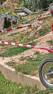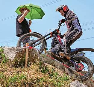 Erst als es nicht mehr nur einzelne Tropfen regnete, sondern sich die Schleusen des Himmels voll öffneten, gingen die sechs tapferen Teilnehmer kurz in Deckung Schon bald folgten aber wieder nur moderate Niederschläge und die Fahrt ging weiter Vier Runden mit jeweils sechs Sektionen waren zu bewältigen Es ging auf und ab, es hatte enge Kurven, grosse und kleine Steine stellten sich den Teilnehmenden in den Weg Der Boden war aufgeweicht und glitschig, da hiess es am Hinterradreifen Luft ablassen zugunsten einer besseren Bodenhaftung