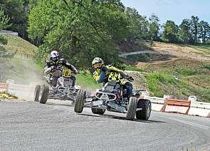 Trotz wenigen Teilnehmern – es fuhren nur fünf Quads – gestalteten sich die Rennläufe der Vierrädler spannend: Im 1 Lauf gewann Rolf Forrer hauchdünn vor Alfred Wolber (58) und dem Belgier Brendan Dolo (alle RST-Yamaha)