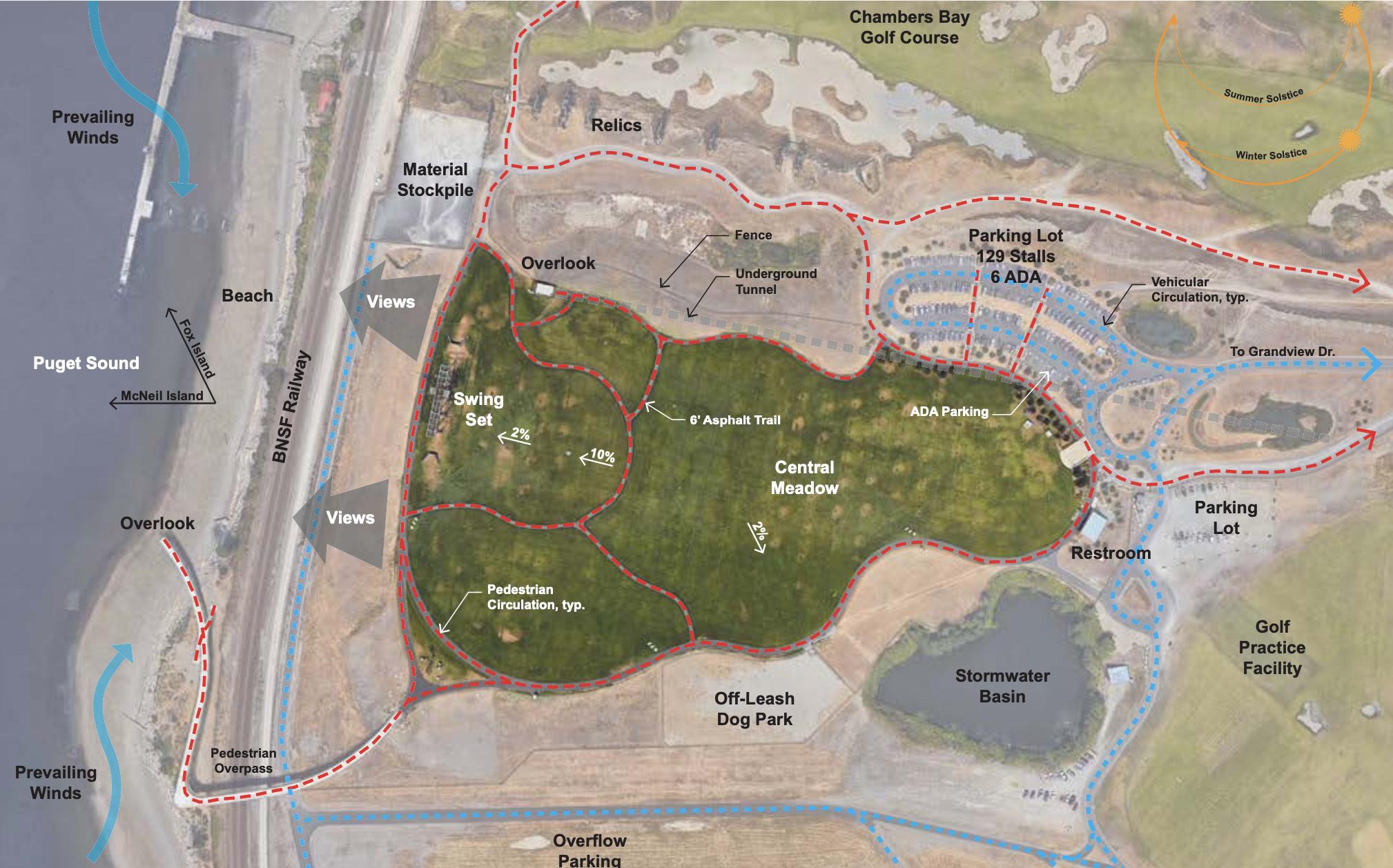 Figure: Existing Site Diagram demonstrating key feature of Chambers Bay Central Meadow.