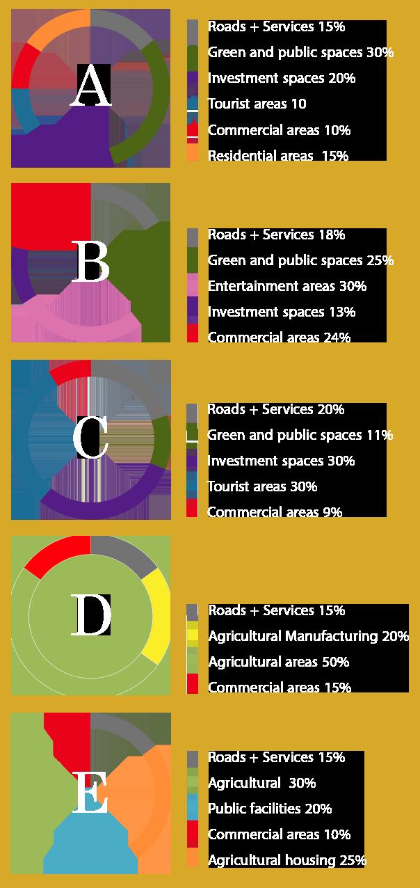 The idea of this alternative is to obtain investment areas with green spaces on the axis and dispense with the residential and industrial characteristic
