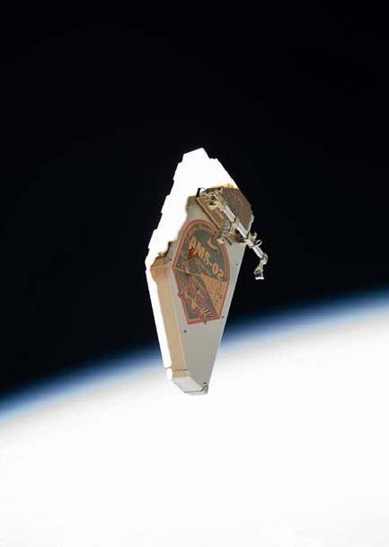 Long Duration Exposure Facility (LDEF) was left in low Earth orbit for 5.7 years before being retrieved by space shuttle Columbia in January 1990