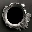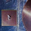 View of an orbital debris hole made in the panel of the Solar Max experiment