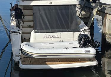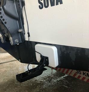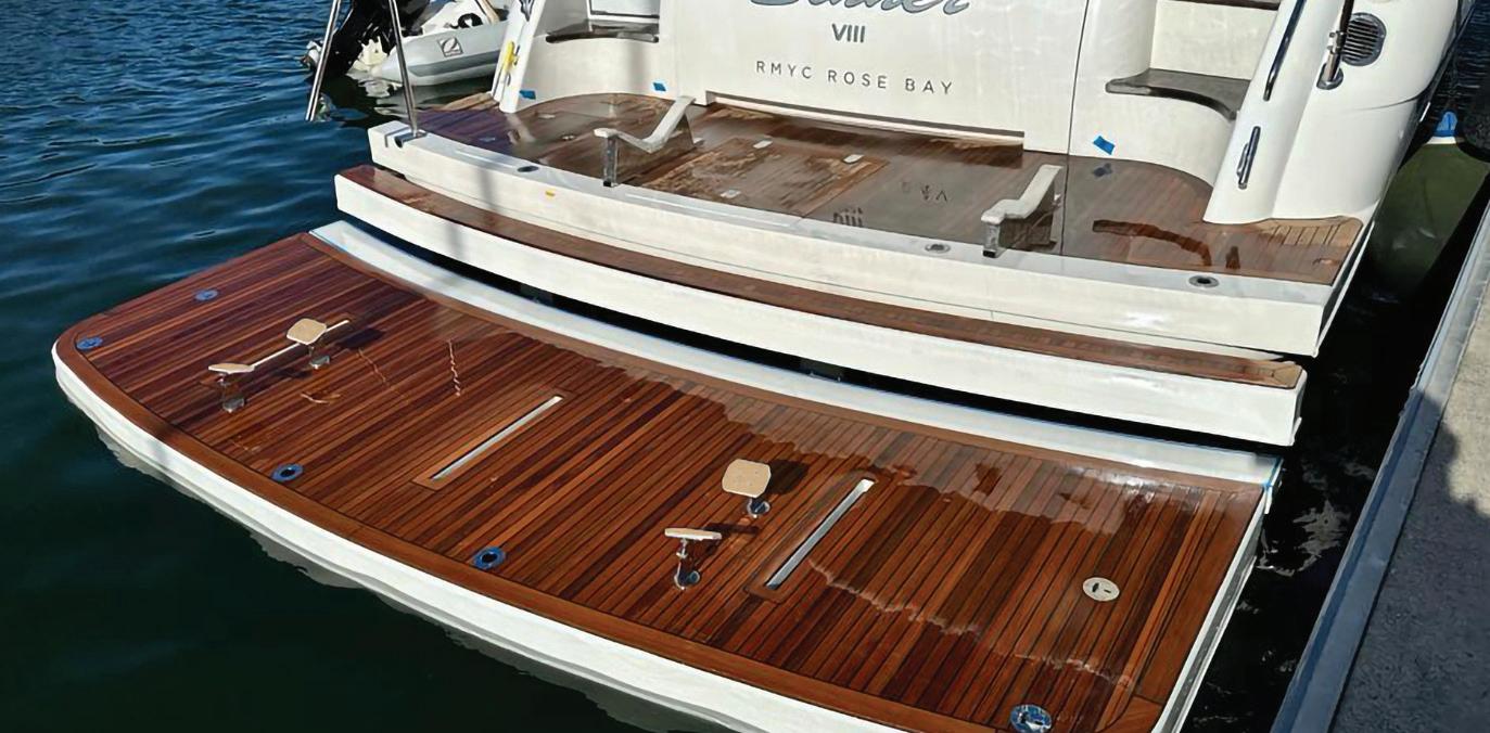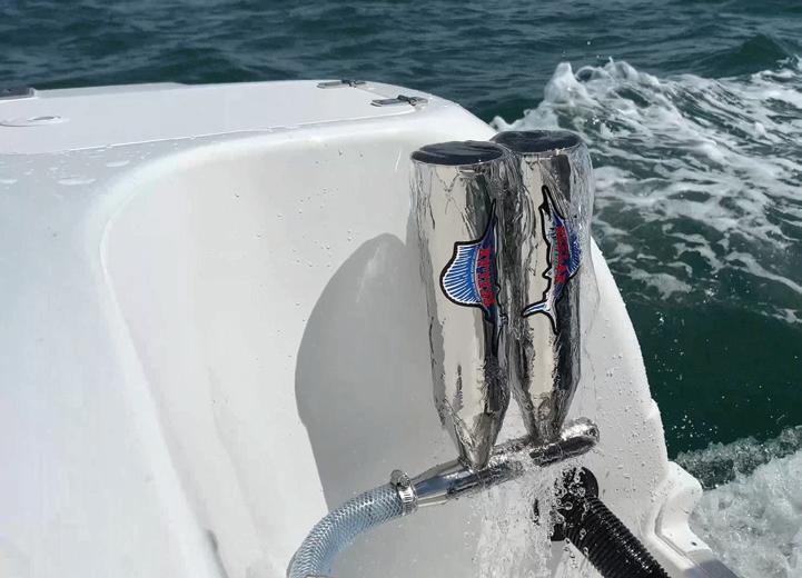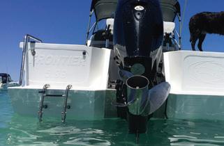 Designed for boat applications where space is limited by a boarding ladder, burly bucket etc or by transom height. Able to be fitted under a swim platform with a minimum transom clearance of 330 mm.