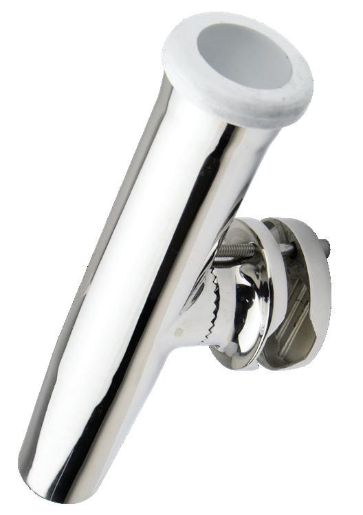 Phender PRO®’s unique, anti-wear design positions the pin above the receiver, protecting the highly polished finish, and the softened edges of the attachment tabs protect your line. The Phender PRO is expertly machined from stainless steel for maximum protection in fresh or salt water. Sockets can be mounted either on a vertical or horizontal surface.