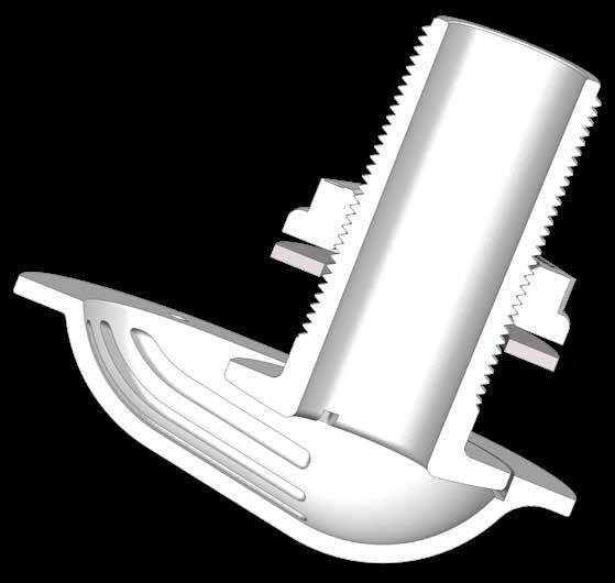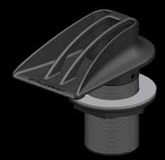 • The Intake Strainer/Thru Hull has an integrated Hi Flow scoop, designed with flared intake channels to maximise flow efficiency yet prevent large debris entry. Undercuts on the base assist with sealing against the hull surfaces.