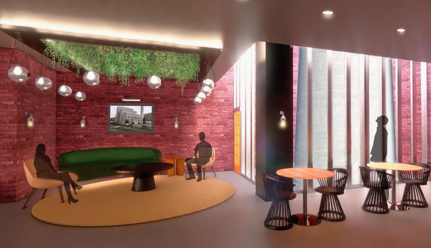 Incorporates a diverse range of comfortable seating options, integrates biophilic design, and establishes a space for the community to unwind.