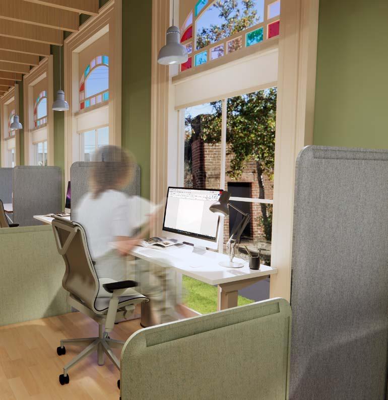 Today, Clark Hall serves as an academic building for the Savannah College of Art and Design. Originally, it was erected as a train station. The project honors the buildings original use by preserving the historic arch forms and stained glass windows throughout.