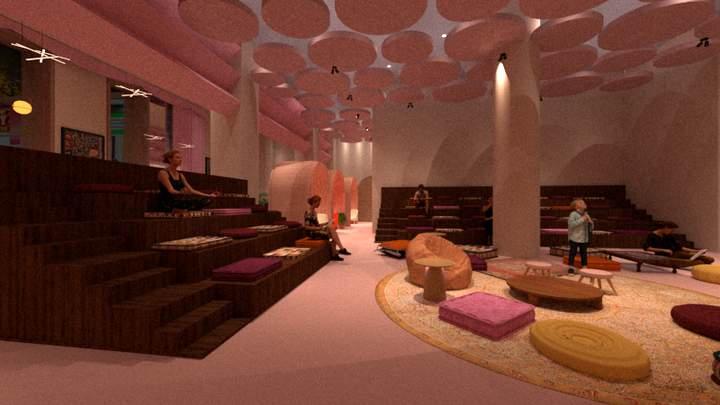The design of JOURNEY Community Centre for the Arts was inspired by the concept of ones life 'Journey'. It ties in both places of nature and the psychology of colour, and how those two subjects are heavily correlated The Community Centre is a space where 2SLGBTQIA+ youth and young adults can develop their full potential through arts ranging from drama, theatre, music, visual arts, and culinary art
