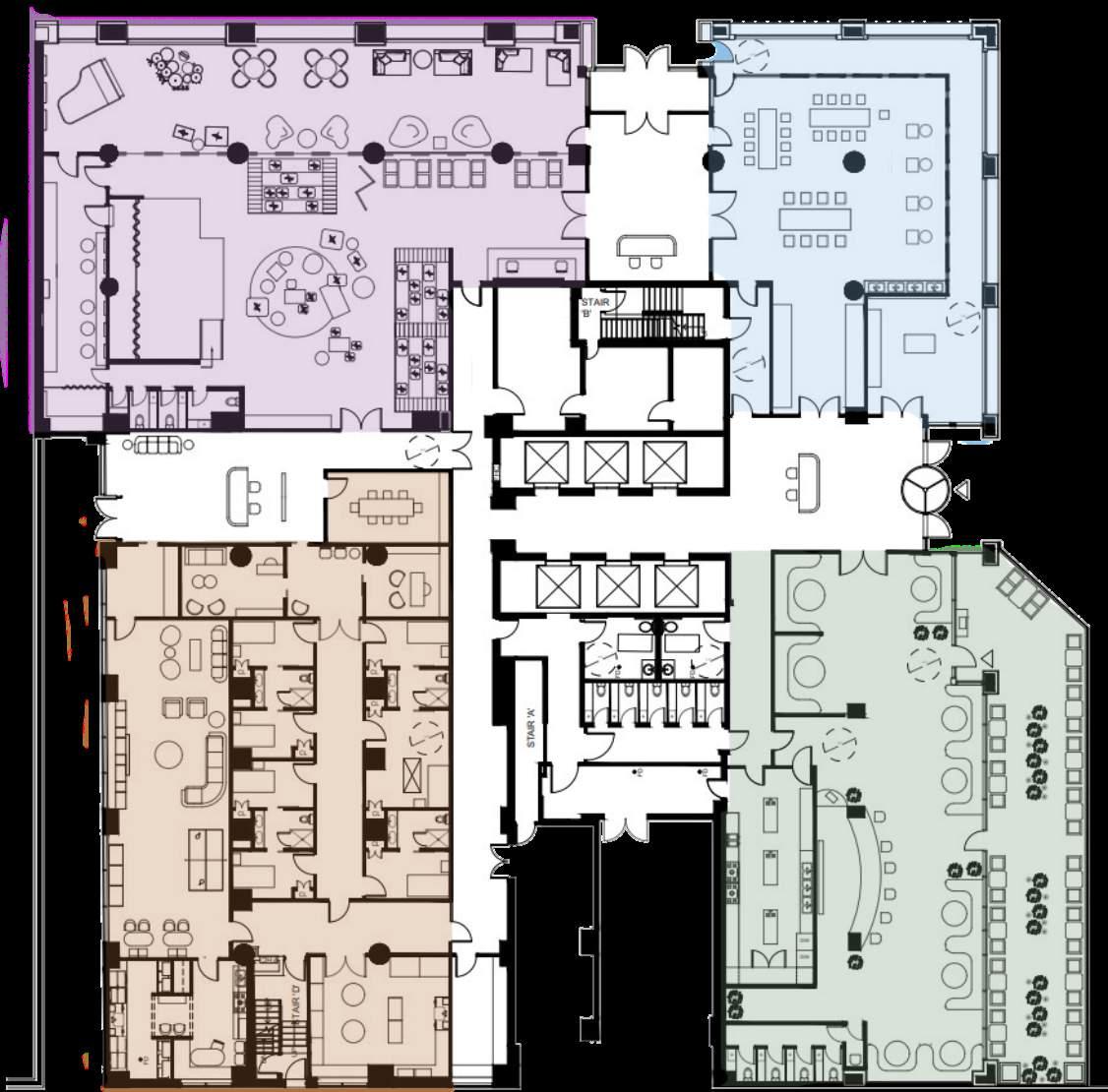 The kitchen is the place employees gravitate to for a feeling of relaxation and comfort. Aside from the kitchen, the bedroom is also a place of escape. Being in a quiet and familiar space like your own bedroom can bring a sense of ease like nothing else. The private offices, meditation room, quiet room, library, and break-out rooms all contribute to the feeling of being in a cozy and safe space. Here at Herman Miller we are a place of serenity and calmness, so that work can be done efficiently and productively.