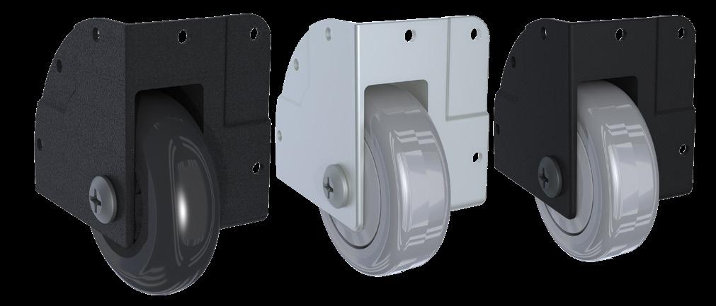 • Available in silver or black, with rugged 3” roller blade style wheel (with ball bearing) or 3” TCH gray wheel with integrated thread guards.
