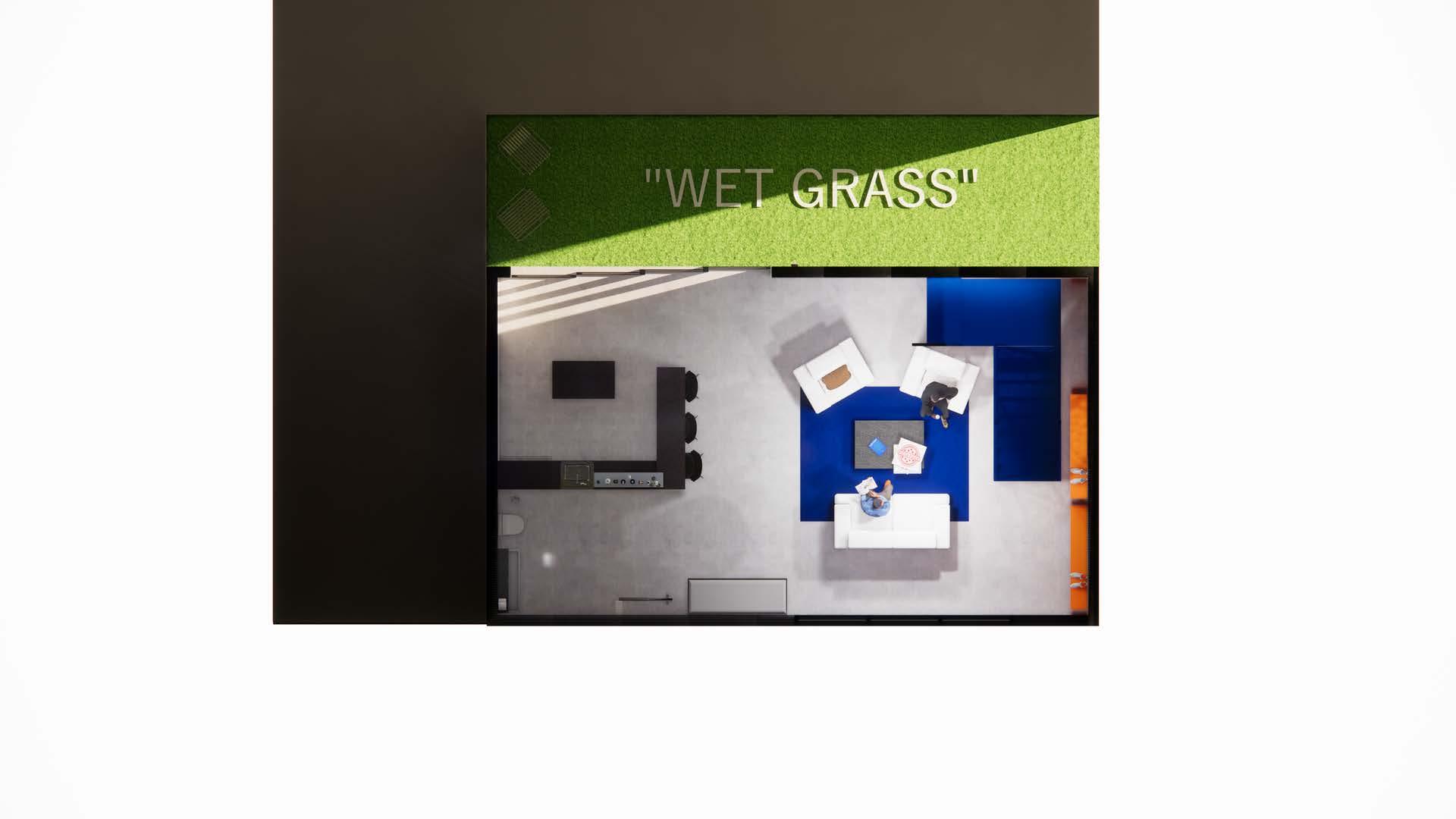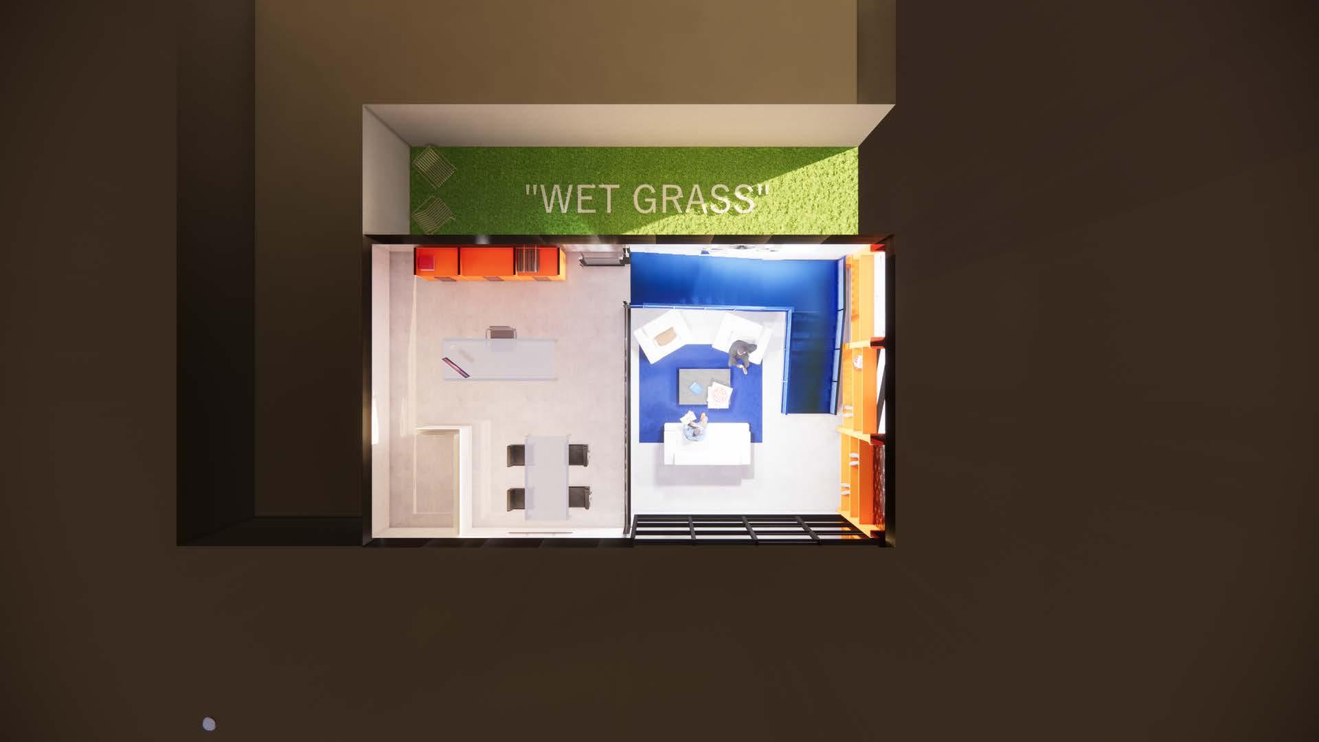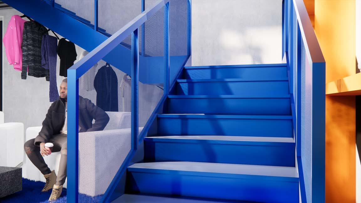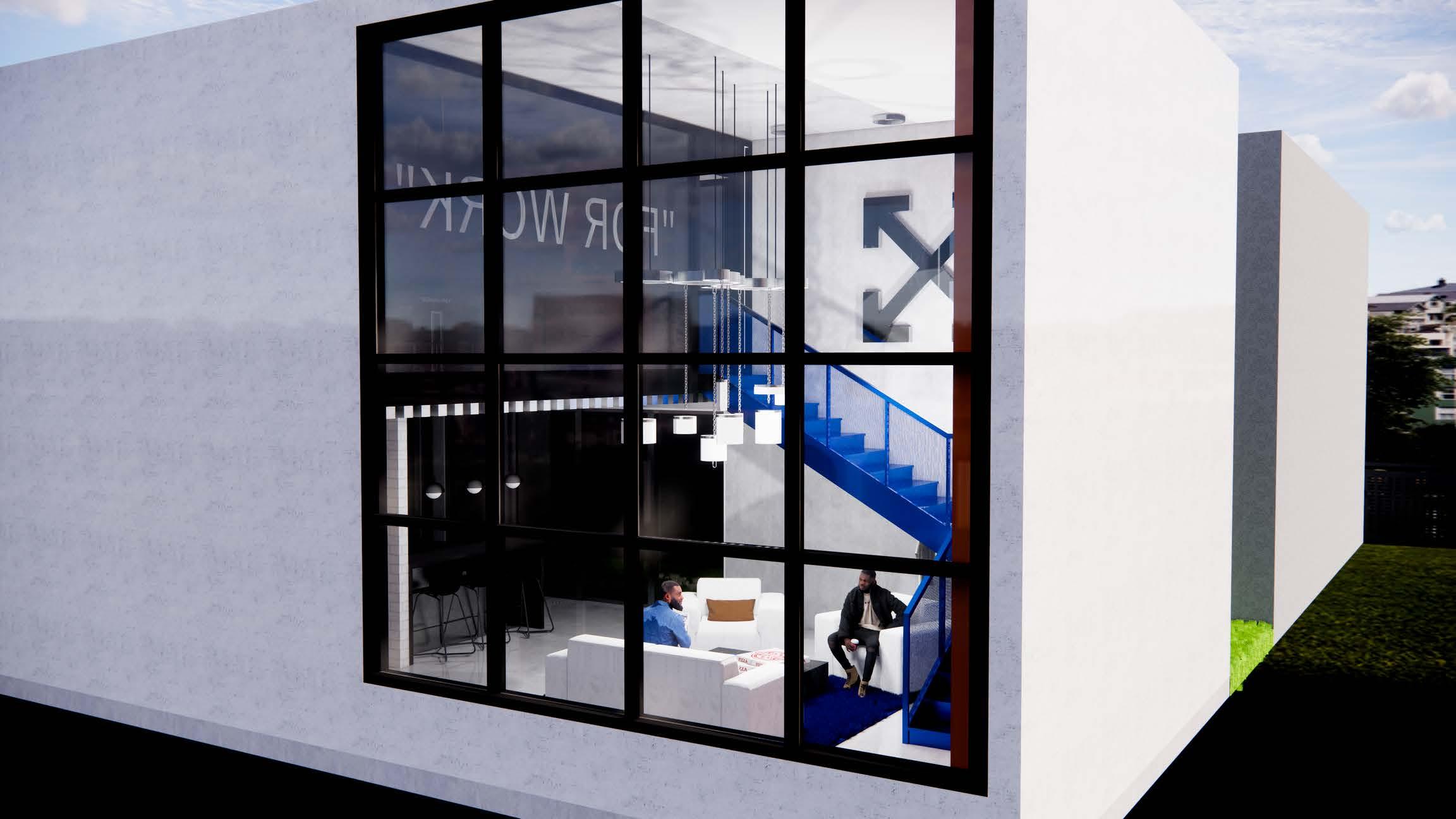 This loft is a collaboration space that Abloh would have used as both an entertainment space and a work space. The design is influenced by his famous collaborations and brand OffWhite.