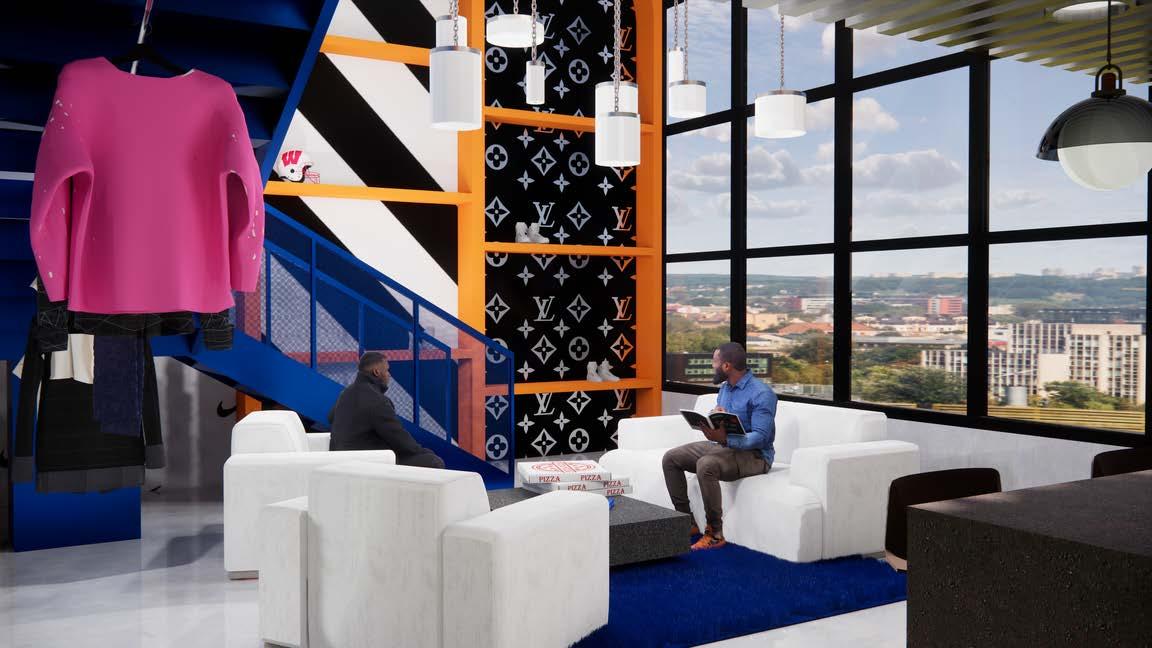 Virgil Abloh was an American fashion designer. This loft was inspired by him and is located in New York. Abloh took his Chicago roots of street style and crossed it with luxury brands. HIs work is all about collaboration and social interaction. He has stated "my iPhone is my office. As long as my ohone has battery power I can continue to work and produce whatever I wantandneed".