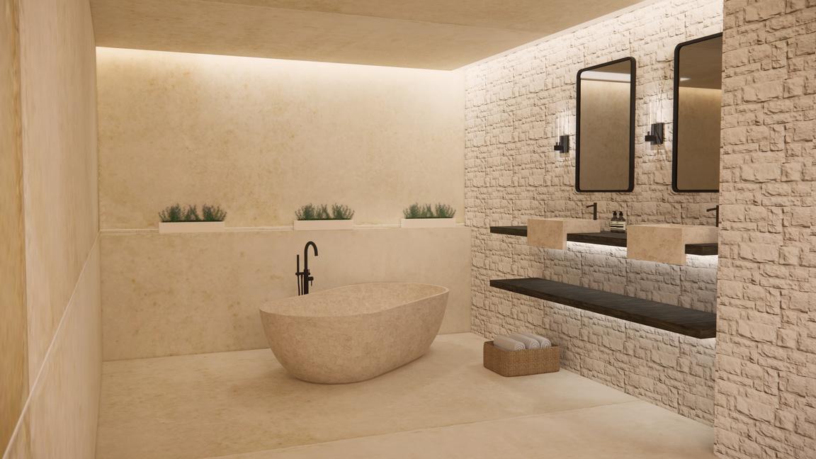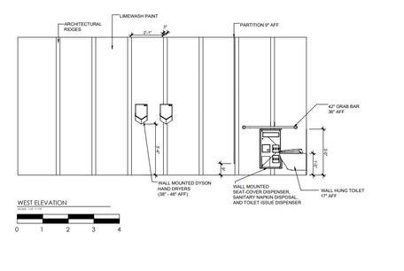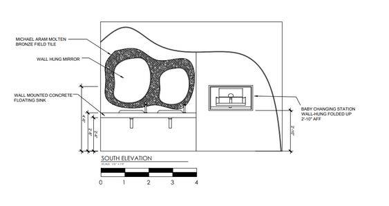 RThis commercial bathroom is designed with women in mind in relation to the forms within the space. The neutral, yet varied, pallette falls in line with Skims and their inclusive motive.
