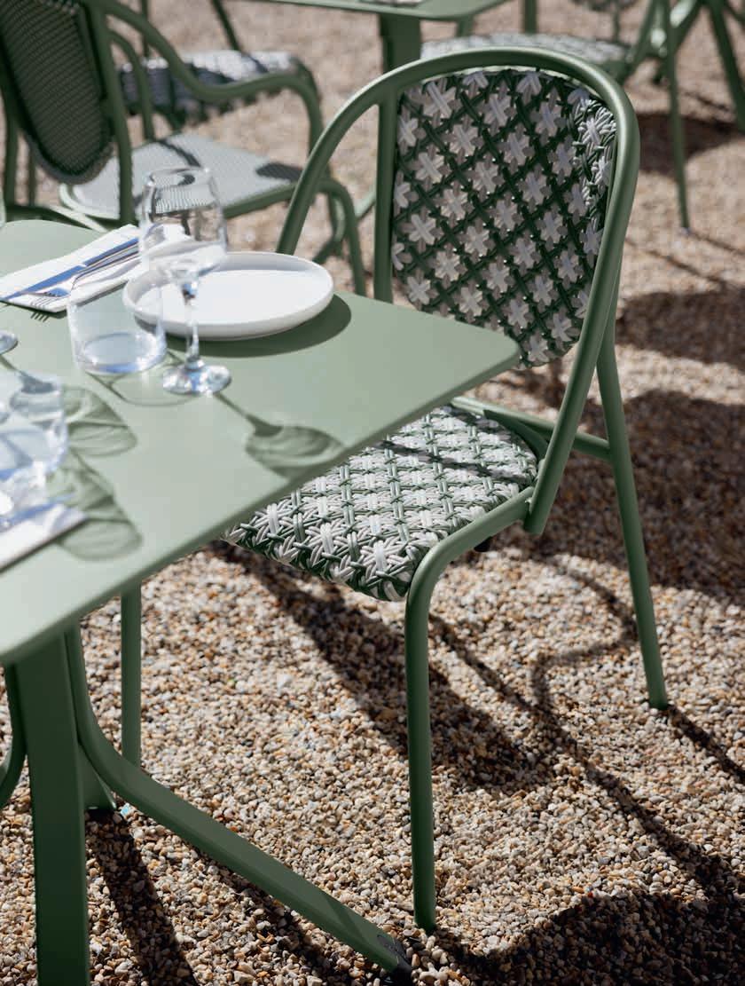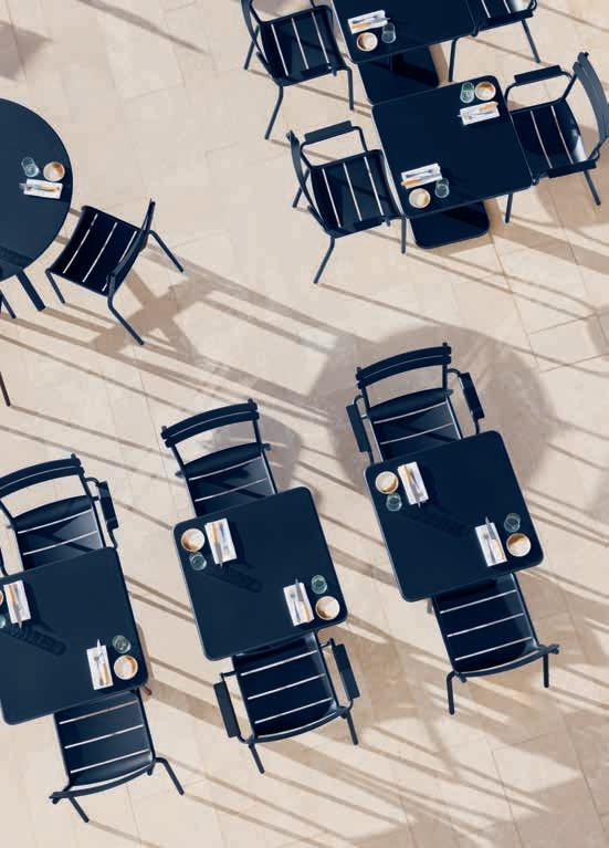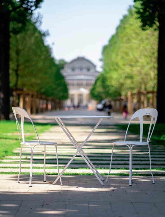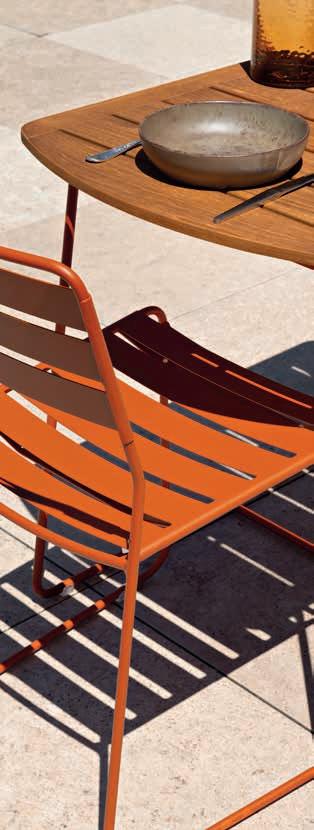 re-paint. With the Re-Paint service, Fermob partners with its historic paint supplier, Axalta. Colours are reinvented and furniture gets a fresh new look—again and again. In total, more than 160 Fermob products can be restored locally by a network of qualified, certified professionals, using a curated palette of 15 exclusive colours. A way to extend the pleasure almost endlessly!