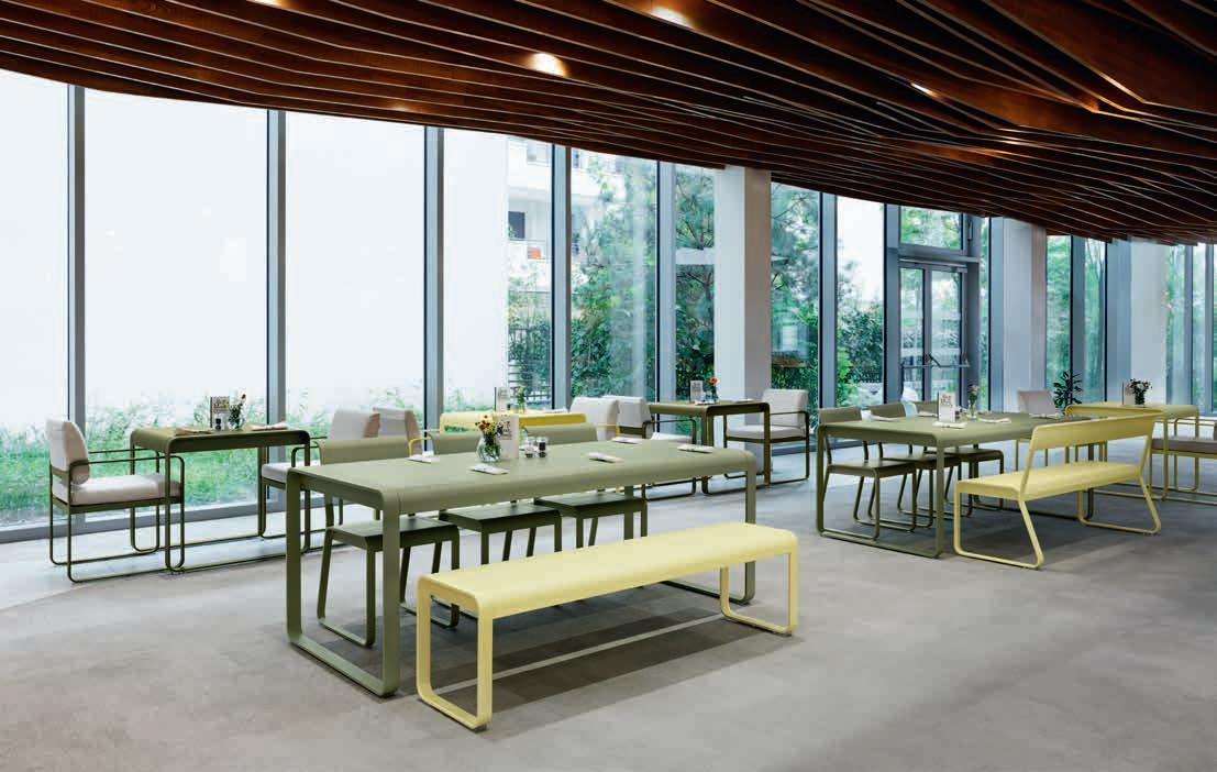 Fermob’s “joie de vivre” finds its way everywhere… even into the workplace. A colourful showcase of playful furniture that multiplies smiles and sparks joyful meetings.