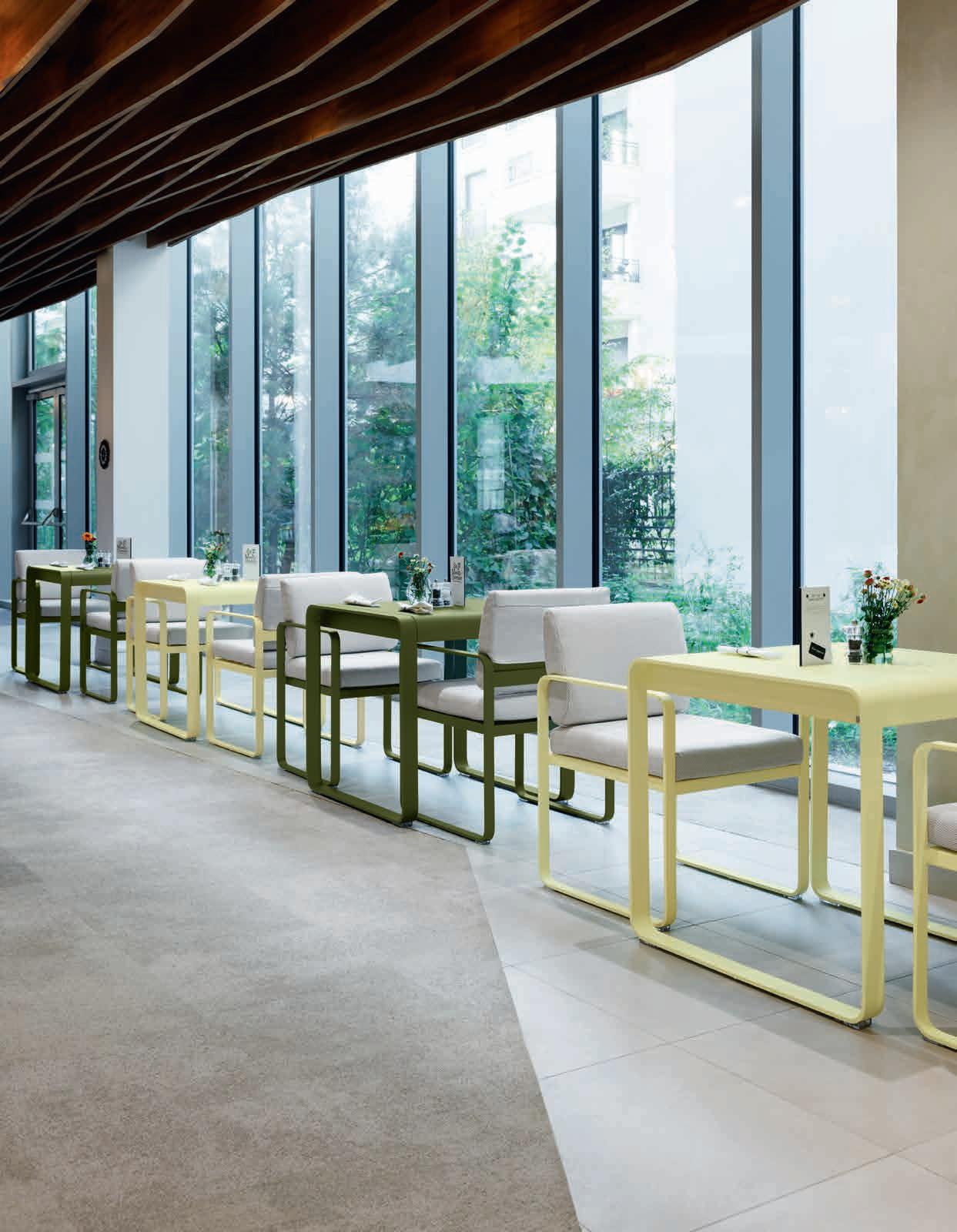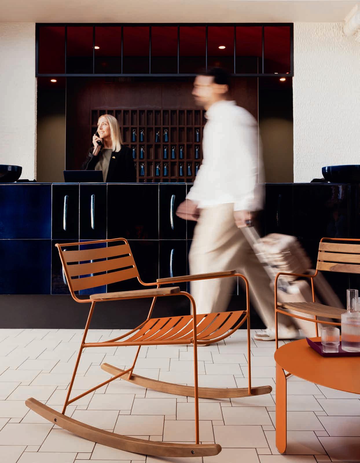 Hospitality or the art of welcoming, at the service of every space and those who bring it to life. At Fermob, we design lively, colourful and meaningful experiences, because shaping a space goes far beyond furnishing it: hotel, workplace, restaurant, public space or retail, each place has its own language. Our ambition is to give every project a soul, with an extra dose of Good Vibes Design that truly makes the difference. From the lobby to the terrace, from the restaurant to the guest room, we unlock the potential of every square metre, starting with your uses, your desires, your everyday reality, in short, you. Always with the same idea in mind: creating beauty that feels good, and turning every space into an ode to colour and “joie de vivre”. Because a well-designed place is first and foremost a place where you feel good. A place where you want to pause, connect, share, and work too. A living place. A place that vibrates with life. A place we simply can’t wait to create… with you.