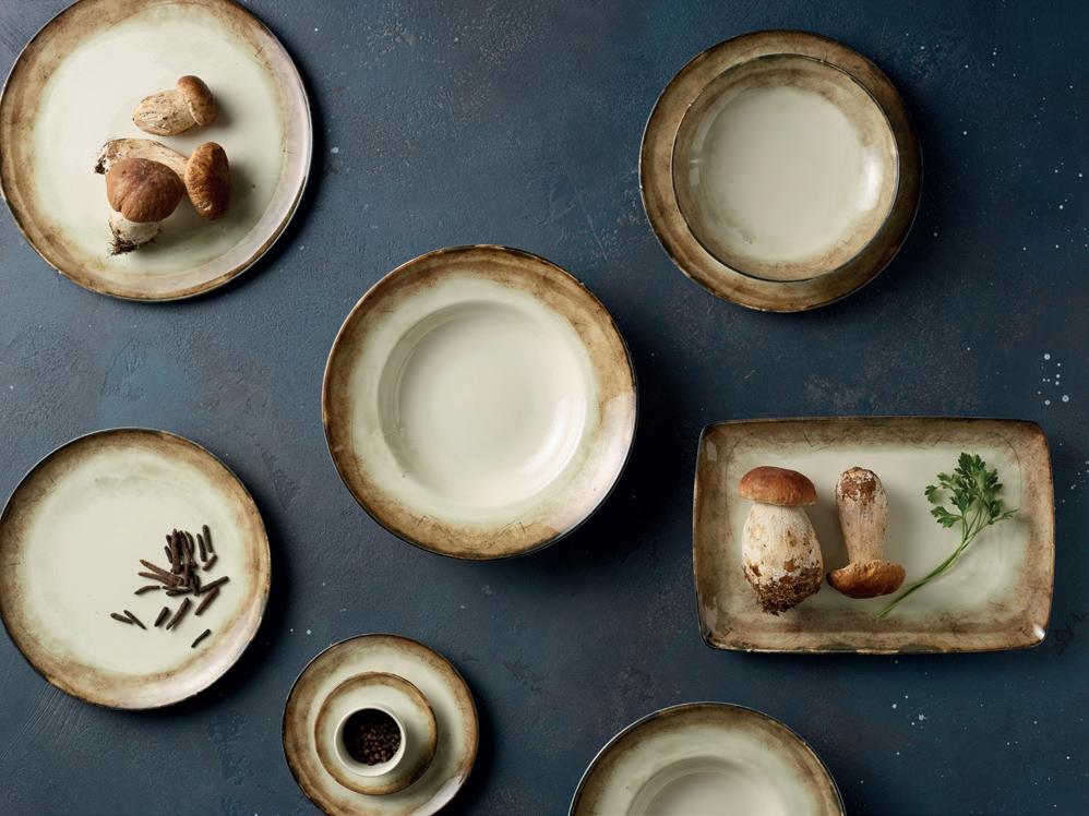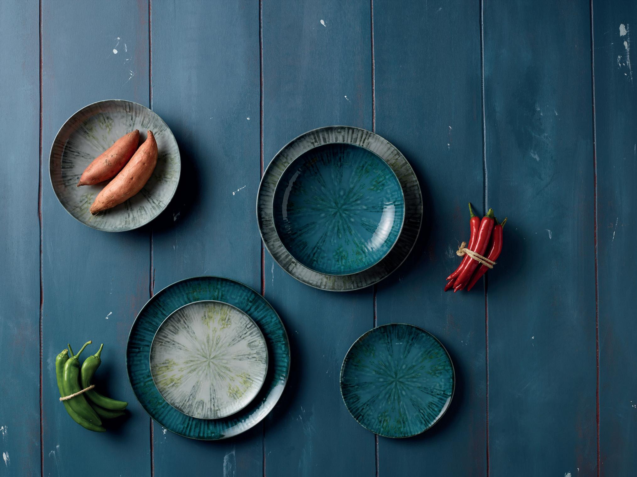Looking at the nuances of sea and earth, Arthur Krupp evokes the charm and warmth of handmade plates. A dish that is the result of the latest technology, a perfect balance between the strength of porcelain and the durability of an underglaze decoration. From furniture to the table, international trends are rediscovering the charm of ceramic craftsmanship, bringing back that warmth and concrete imperfection typical of the handmade products of the past.