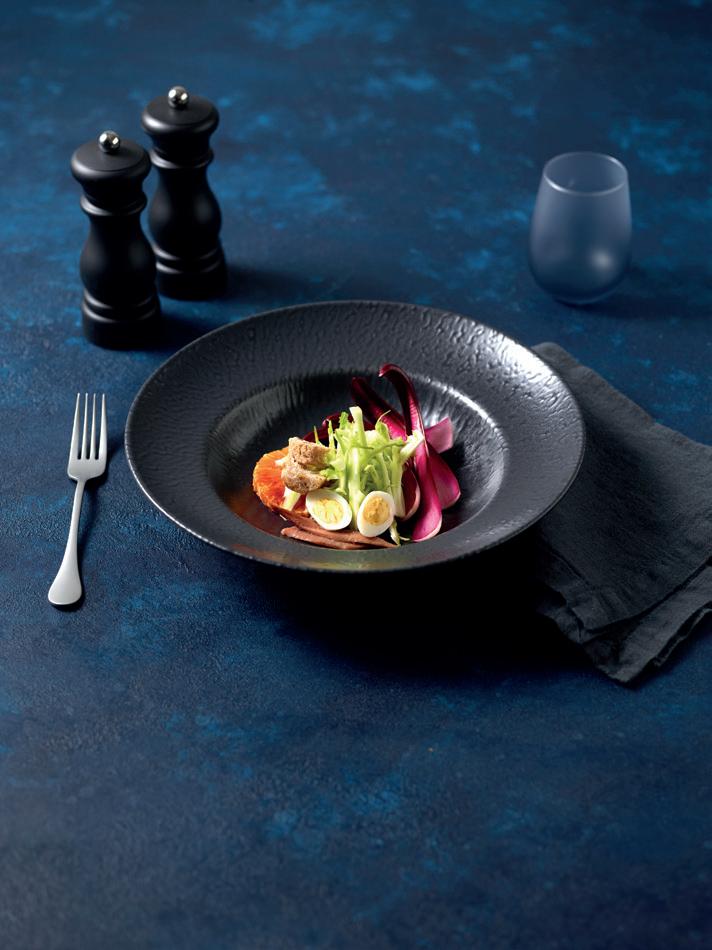 Stonecraft is all about uniqueness, character and personality, expressed through a design of irregular, tactile shapes that evoke natural stone in its rawest form. This collection is ideal for showcasing premium ingredients, offering a canvas plating that not only supports but enhances every element. It’s a way to restore the spotlight to even the simplest preparations, giving them the place of honor they deserve. The collection’s distinctiveness is further accentuated by the glossy finish of the plates, which adds refinement to their rugged surfaces.