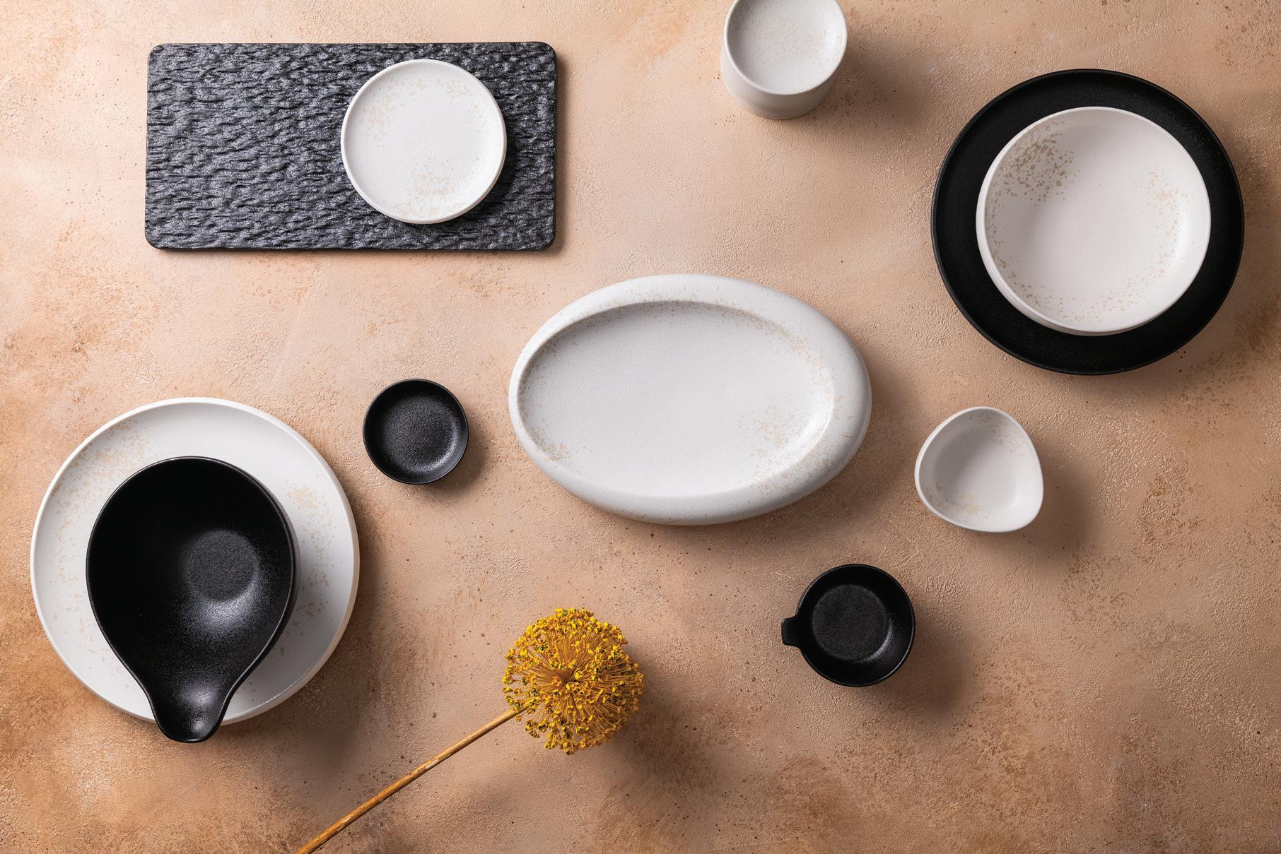 Questa collezione è ideale per valorizzare le materie prime di pregio, regalando un contesto all’impiattamento capace di accompagnare oltre che di esaltare ogni ingrediente. Un modo per donare di nuovo alle preparazioni più semplici il posto d’onore che meritano. L’unicità della collezione Stonecraft è ulteriormente valorizzata dalla finitura lucida dei piatti, che ne impreziosisce le superfici ruvide.