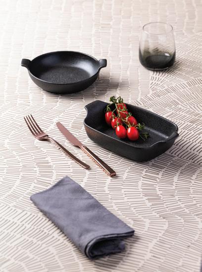 Its deep and porous surface evoke raw cast iron, yet its undulating shapes immediately soften its character: Black Clay is a tactile collection, both simple and bold. The line includes plates, bowls, casseroles, trays and uniquely shaped, iconic dishes. Every course – from the most tradition to the most unconventional – can find its perfect stage within these one-ofa-kind plates. The black hue makes each item especially suited for mix & match compositions, allowing for personalized presentation tailored to every style and need.