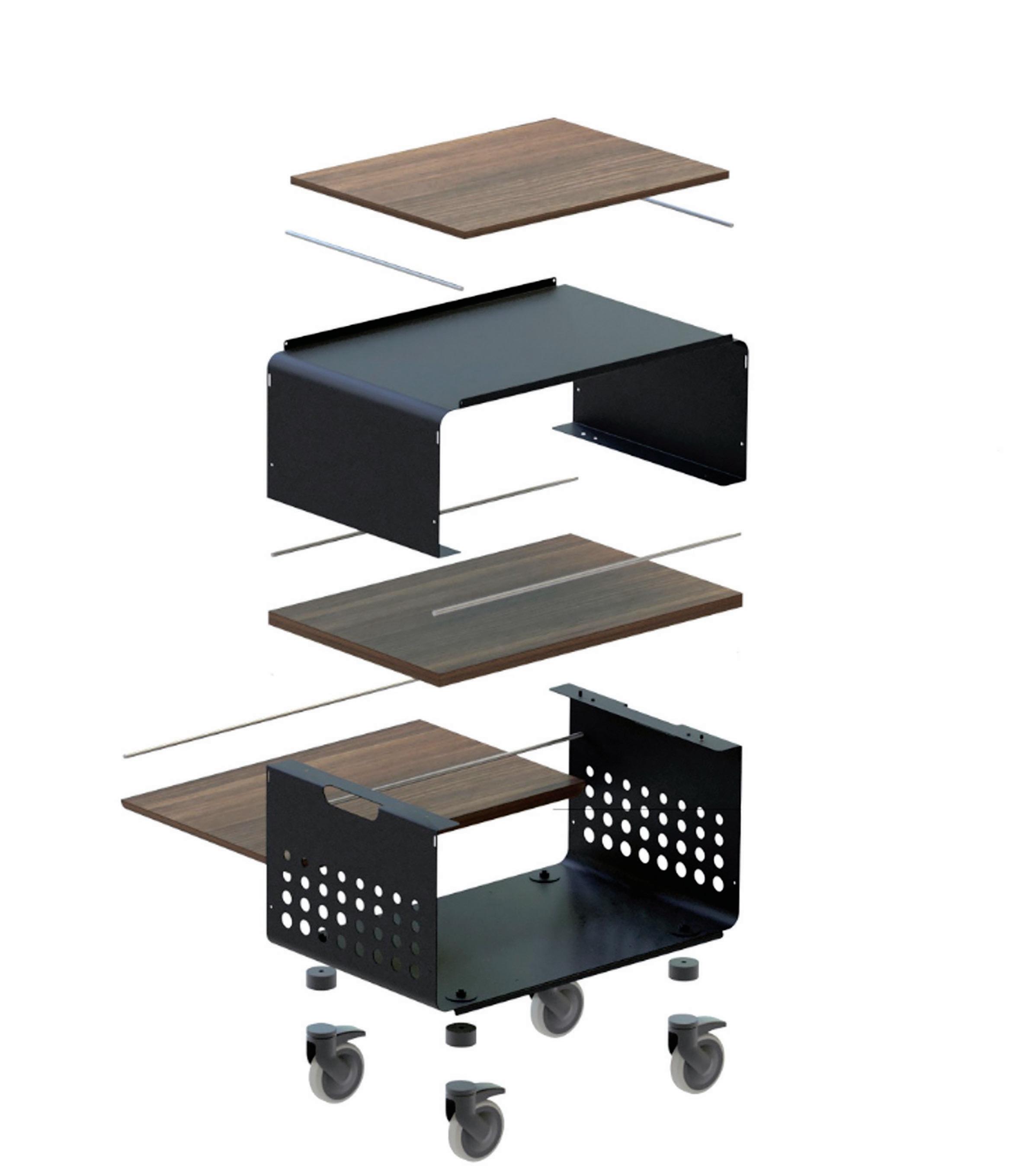 Il carrello servizio di Radici offre ampi e comodi spazi di lavoro e di stoccaggio. 3 versioni: