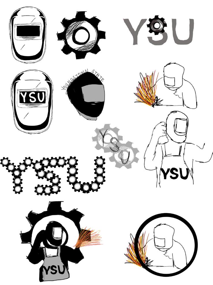 My sketches all revolved around each other and really did not differ much. To me, they just became much more developed and finalized. I kept it all surrounding the idea of welding and engineering, and changed their name to the Youngstown State welders.