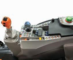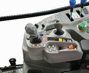 Dependiendo del modelo de tractor, cargador frontal con joystick y botones de cambio bajo carga. Stop&Go, sistema de giro rápido SDD y todos los mandos para el manejo del cargador frontal están completamente integrados y son de fácil acceso.