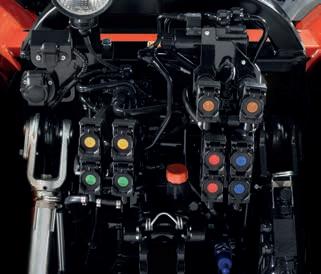 10 adede kadar arka ve 4 adede kadar ortaya monte edilmiş hidrolik güç çıkışı Ayarlanabilir debi sağlayan akış regülatörü