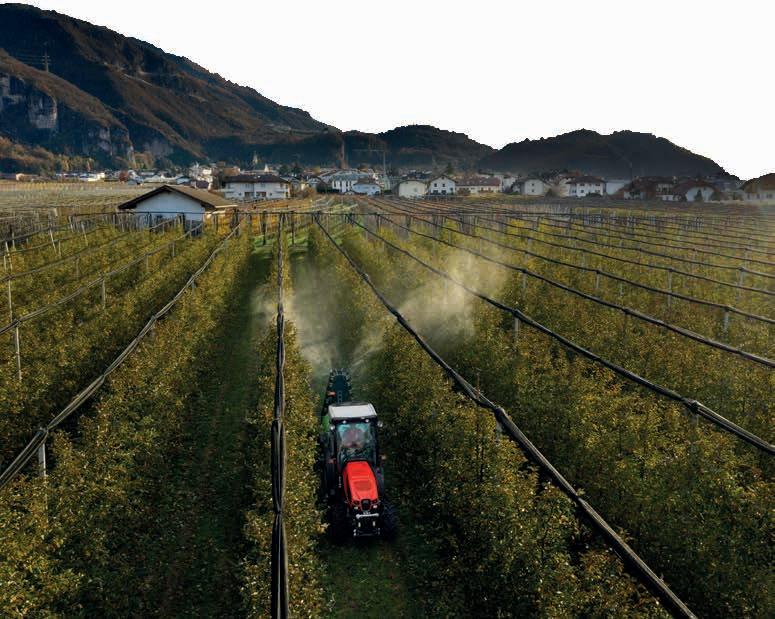 operative, sia in campo che in fase di trasporto su strada. Unitamente alla compattezza del suo design e all’efficienza della gestione integrata dell’intero sistema, i Frutteto con ActiveDrive sono in grado di lavorare frutteti e vigneti con la massima produttività, manovrando attrezzi pesanti anche su pendenze e terreni sconnessi, e in capezzagne strette. Inoltre il comfort è aumentato durante i trasferimenti su strada. La sospensione ActiveDrive è dotata di serie anche di un sistema Anti-Dive e di un sistema di stabilizzazione laterale (Anti-Roll). Il sistema