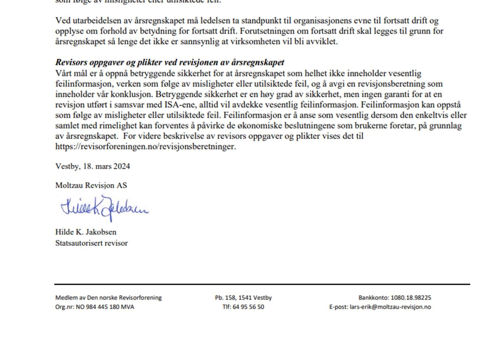 Lea Skofteland and Sigve Trønsdal Lyngstad are elected signatories.
