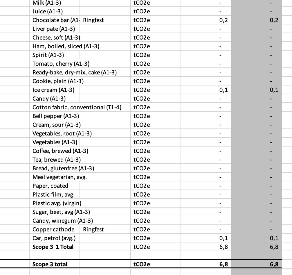 NU viser et totalt (kun Scope 3) Som gir NU sitt utslipp på kun 2,7 tCO2-eq. Se vedlegg 5 «Nøkkeltall NU og Ringfest» for en mer detaljert oversikt.
