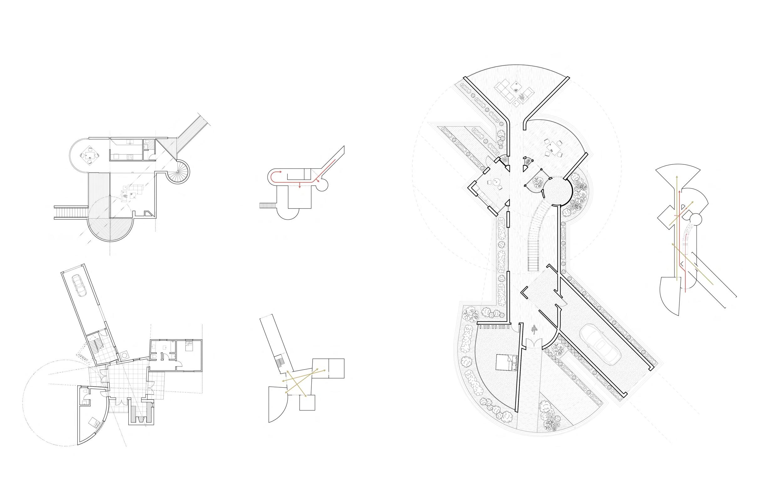 A central vestibule and fragmented circulation create site lines which expose public areas and hide private ones
