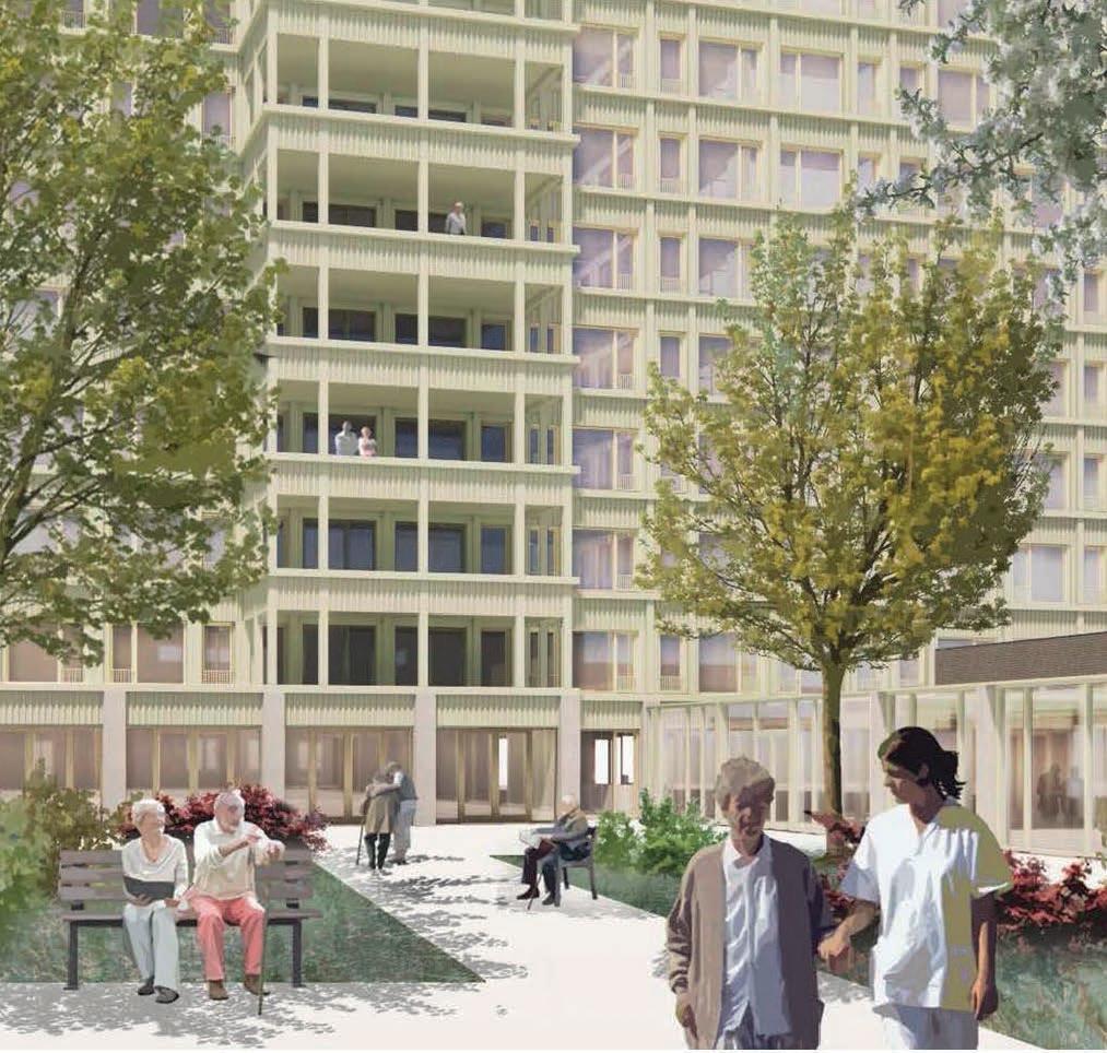 14 floors reuse of the structure 156 care units 2 floors reuse of the building expedition treatment center 1 floor reuse of the building brasserie 3 floors reuse of the structure 92 care units