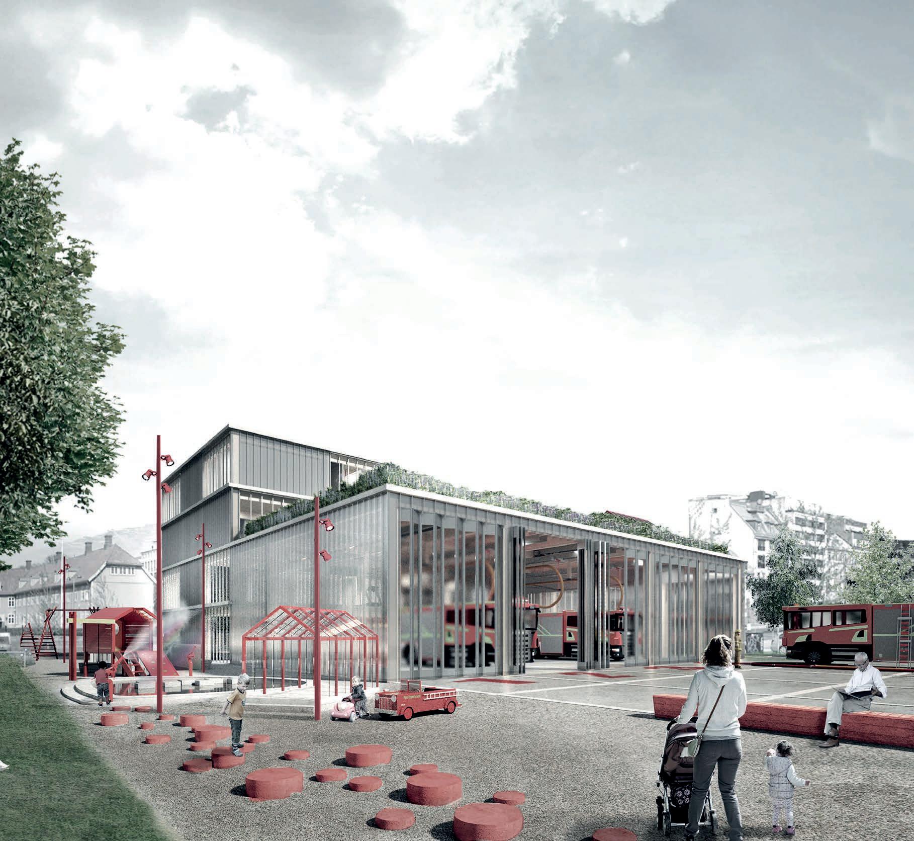 Our project focuses on a sustainable fire station that goes beyond its basic function. We aim to showcase the station’s importance while fostering a sense of community. Through openness and transparency, we highlight the fire station’s role in safeguarding shared values and unity within society. This extra dimension is captured in our motto, “More than