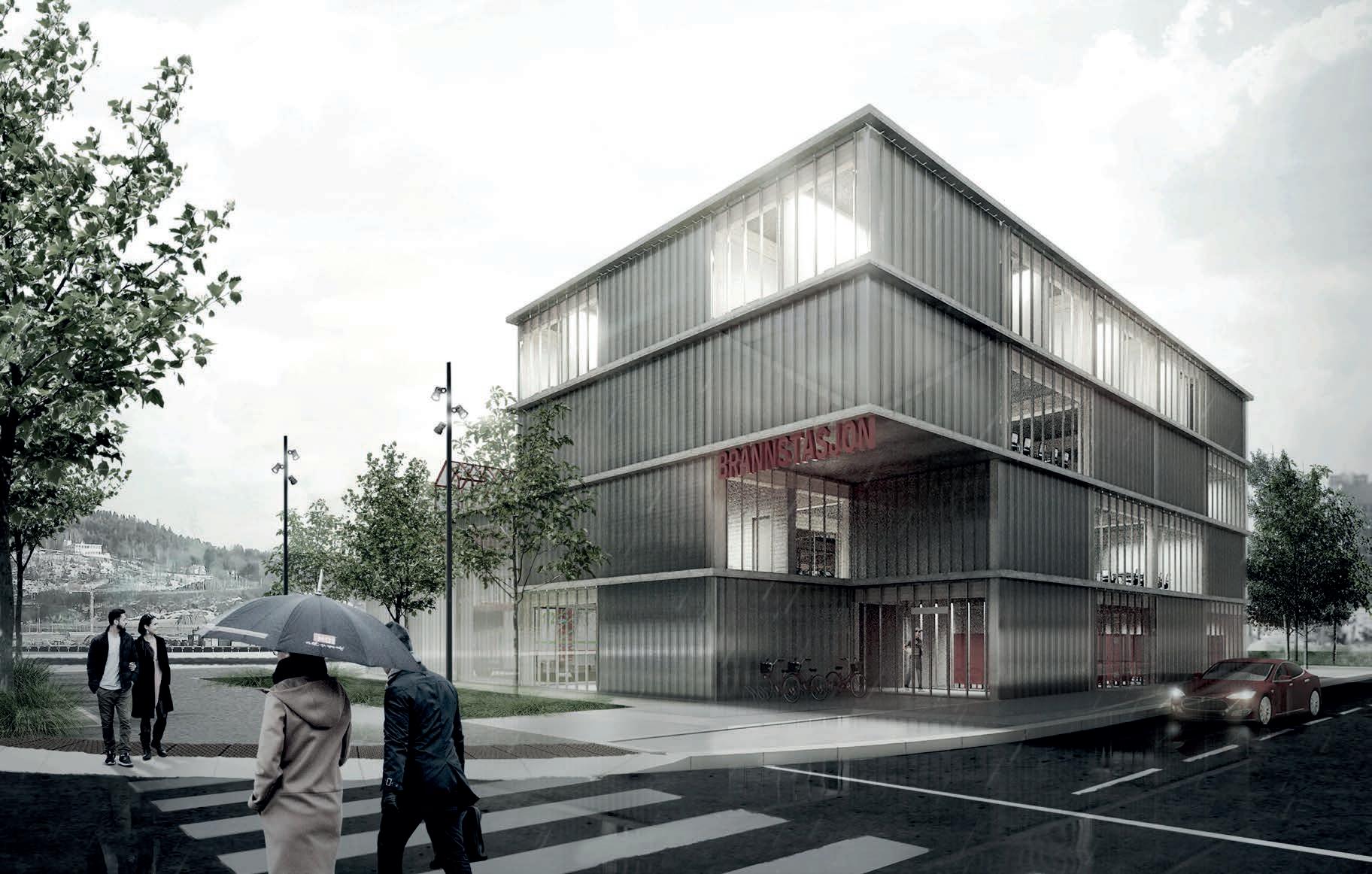 Our project embodies an innovative fire station, reaching out to various sides. The climate shield combines glass with translucent and closed wooden facades. Solar panels generate power, serving as shading and normal glass. This creates an ever-changing appearance, blending technical finesse with inviting simplicity. The station’s open facades vividly portray its activities and crucial societal role. Passersby witness ready fire trucks, guardians of lives and the city. These efforts transform Sentrum Brannstasjon into more than just a fire station. It becomes an architectural testament to engagement and sustainability.