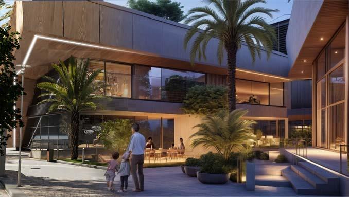 The architectural design of the building adhered to the stringent standards set forth by the State of Saudi Arabia and the regulations stipulated by the Riyadh Municipality, ensuring strict compliance with a predefined set of guidelines. A thorough analysis of the architectural elements and design style was meticulously conducted to ensure harmony with the surrounding environment of the region. Notably, a central square adorned with palm trees serves as a nod to the ancient oases of the city, seamlessly integrating the concept of heritage with modern aesthetics. This design choice is further accentuated by the incorporation of expansive glass windows and light wood materials that resonate with the color palette of the neighboring structures.