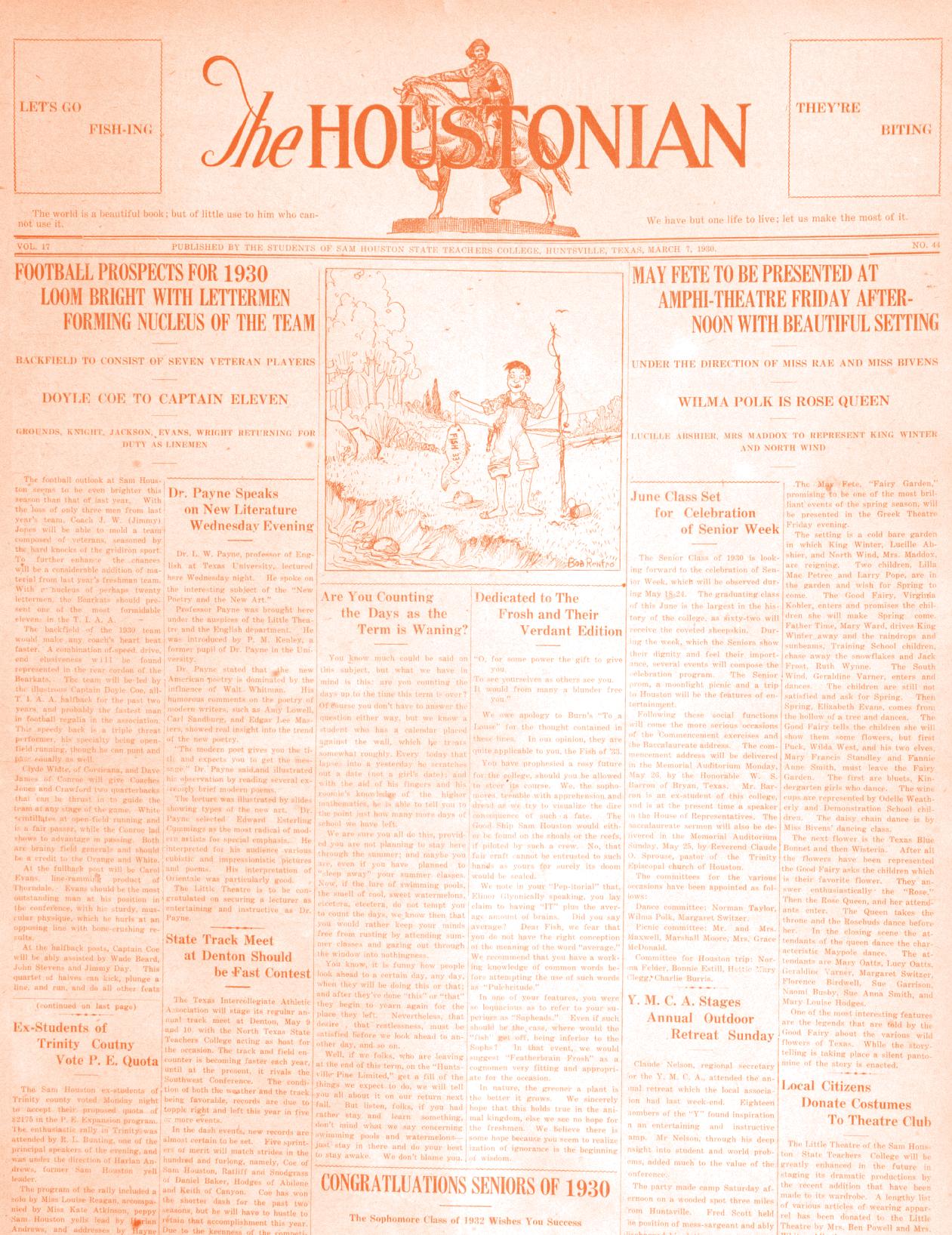 January 29, 1918. Known then as “The Normals,” Sam Houston’s first basketball team defeats Alexander College 35-2 in the first game of an undefeated 7-0 season.