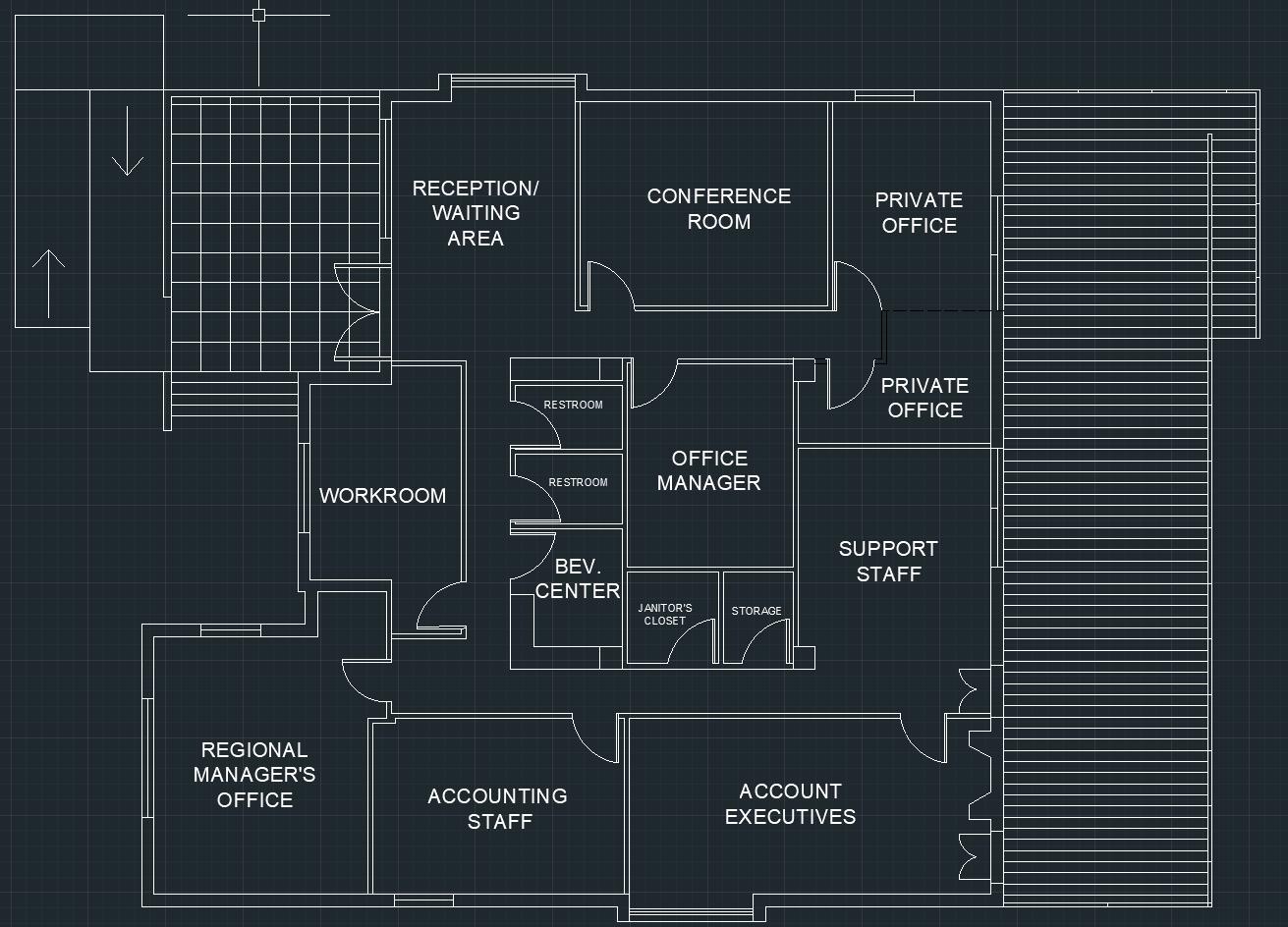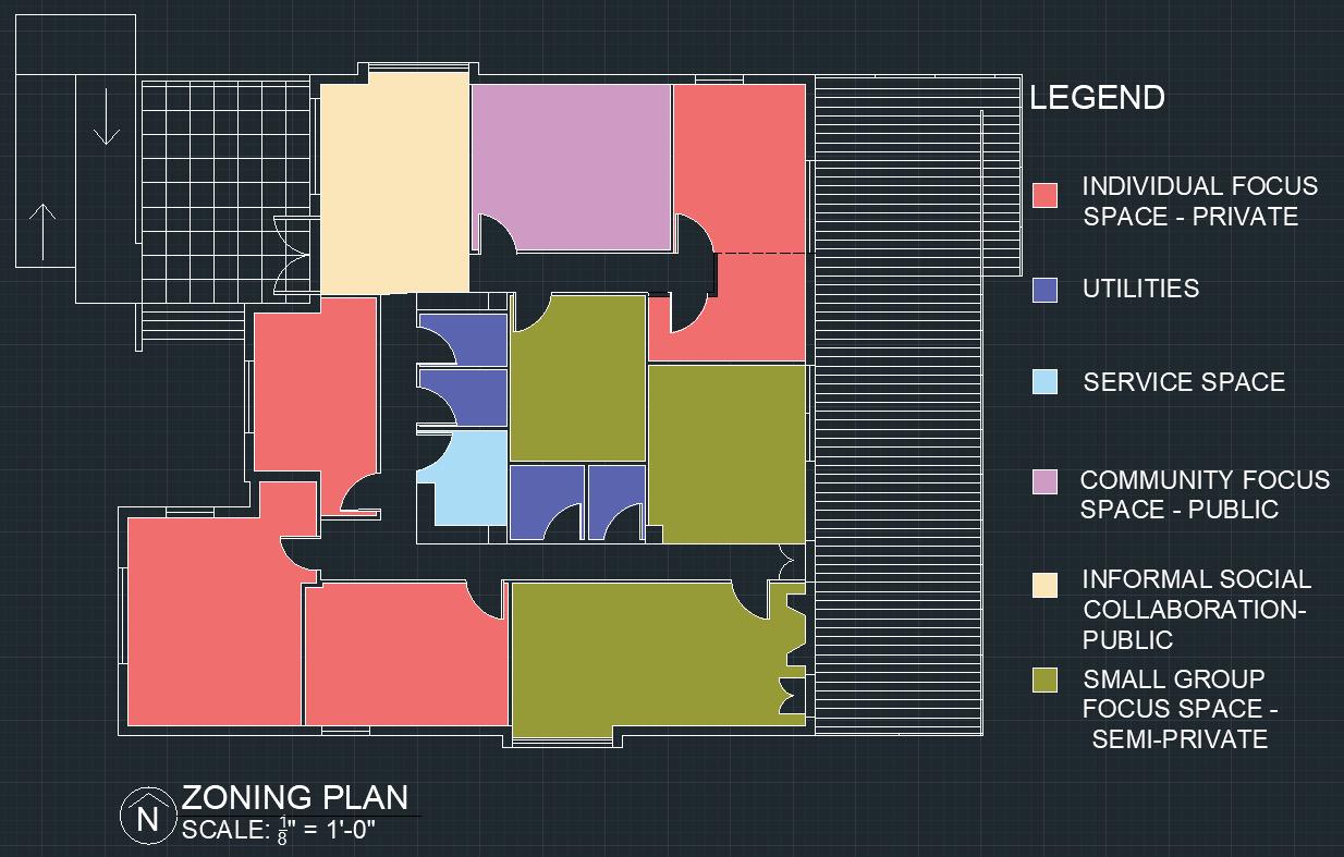 We were given a specific building shell from the textbook and requirements for designing the space. Utilize the skills we’ve learned about the process of design development and planning of interior space. Create an organized methodology through analyzing, planning, and furnishing.