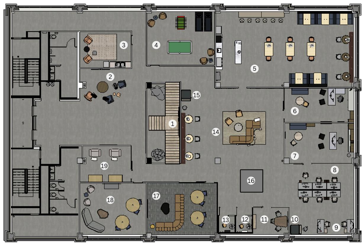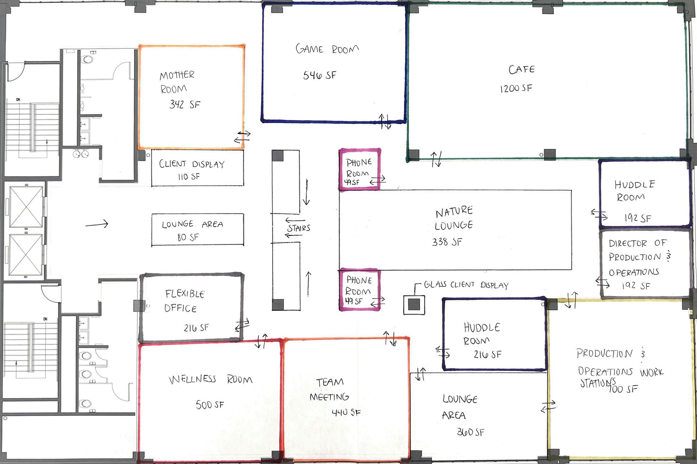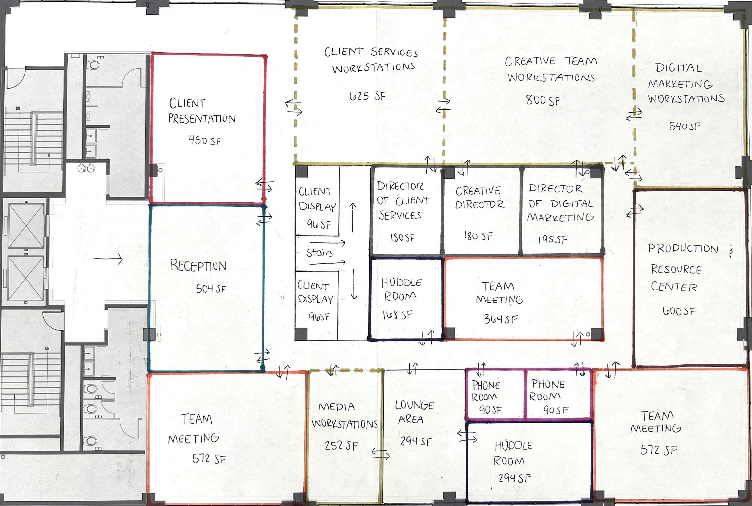 NEXT is a global advertising agency that is opening a new office in Chicago, Illinois. Objectives for the design was to make it a functional space for diverse needs, aesthetically pleasing to clients and team members, and make the space feel like home rather than work.