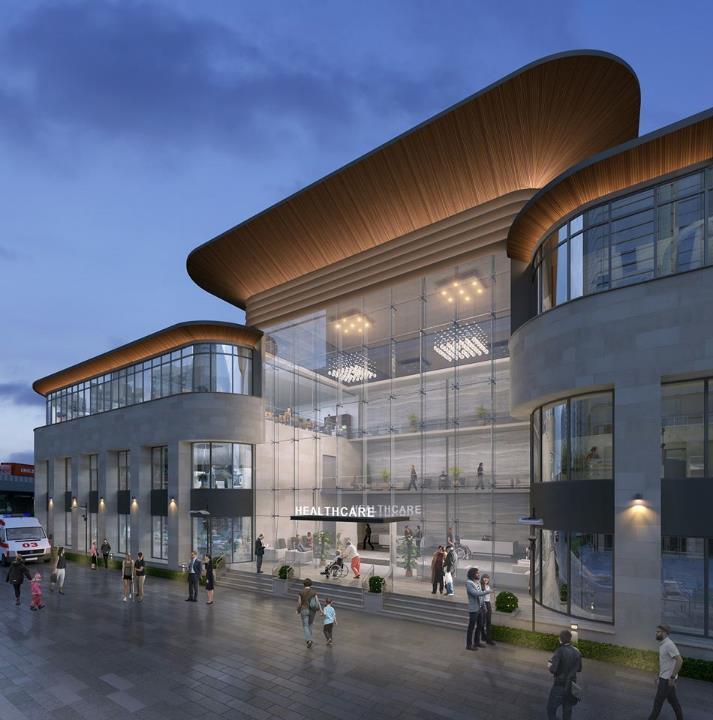 One hundred fifty million square feet HQ office, services, retail, cultural, civic, and other public amenities, residential, and public open space.