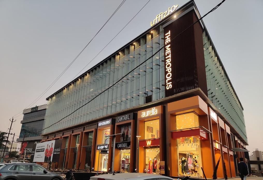 Designed 50,000 sqft mixed use, retail and office building in Valsad, Gujarat. The site is situated at a prime location in Valsad, surrounded by the premium industrial and commercial belt of the city. The Metropolis has been designed based on international standards, setting a benchmark for commercial buildings in the area. Our design utilizes its street corner site, with double-height retail spaces wrapped on two sides of the building and three floors of office space above.
