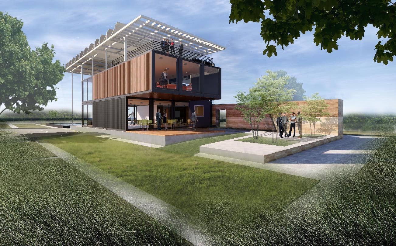 The project is designed using shipping containers to minimize cost and for faster construction. The building is also designed for Net-zero energy, water, and waste.