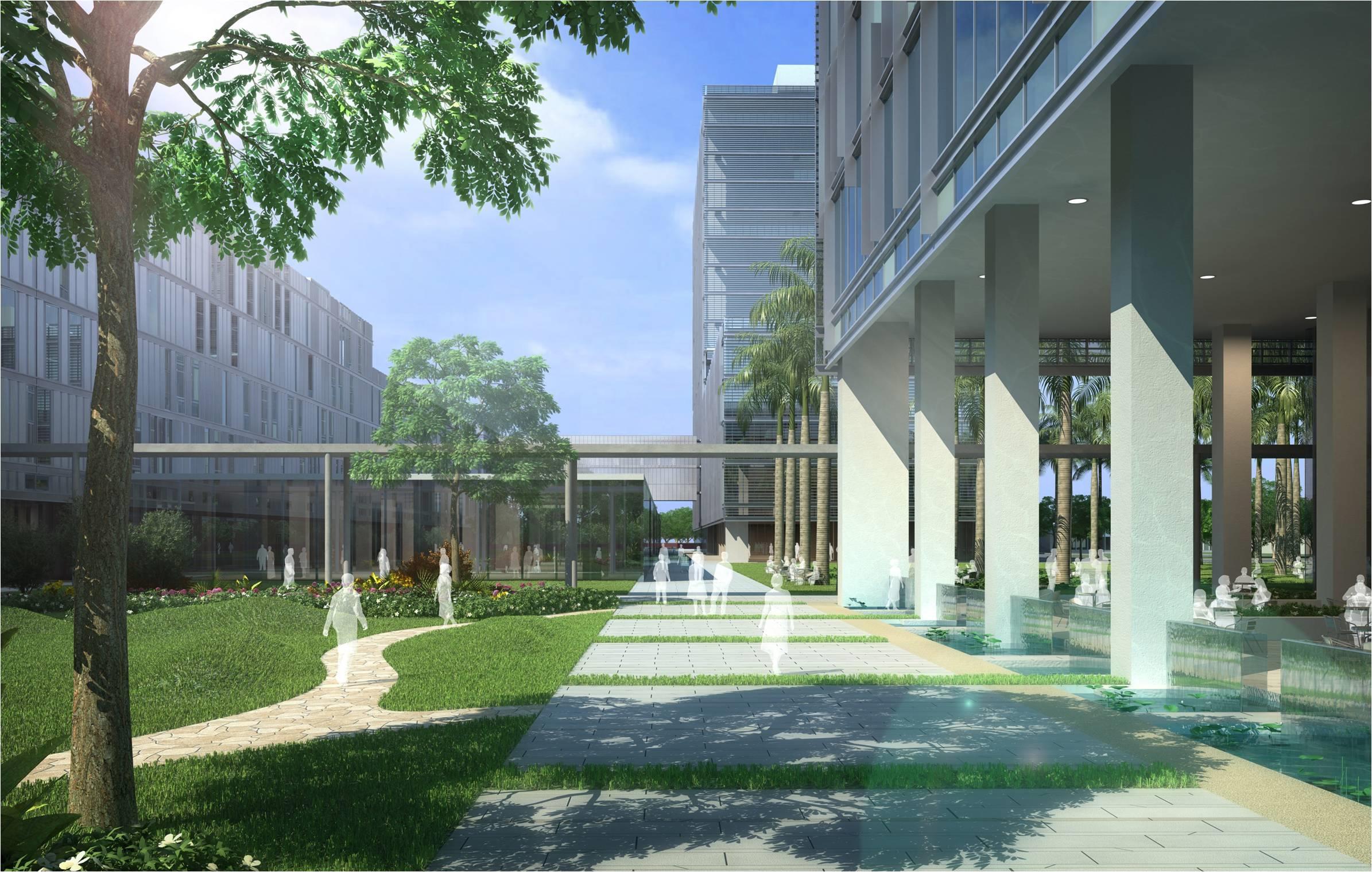 In the master plan by S.O.M., the courtyards help manage a vast scale of space, subdividing it into variously sized courts, plazas, gardens, and rooms, each appropriate for a different use. The courtyard serves as the center of activity for the IT complex, providing connectivity between the various amenity functions which are spread across the blocks, thus transforming the courtyard into an active, pleasant space and the symbolic heart of the project.And finally, they promote a variety of experience, cultivating an overall richness to the spatial character of a project.