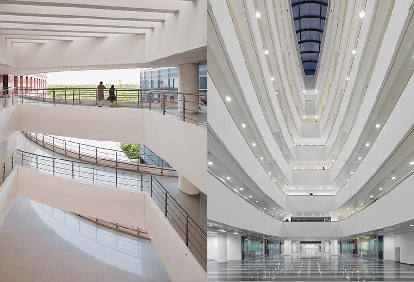 An IT park for Tata Consultancy Services. The project was designed to portray a sense of monumentality. This was achieved by creating an inward-looking indoor collaboration atrium that connected various departments.