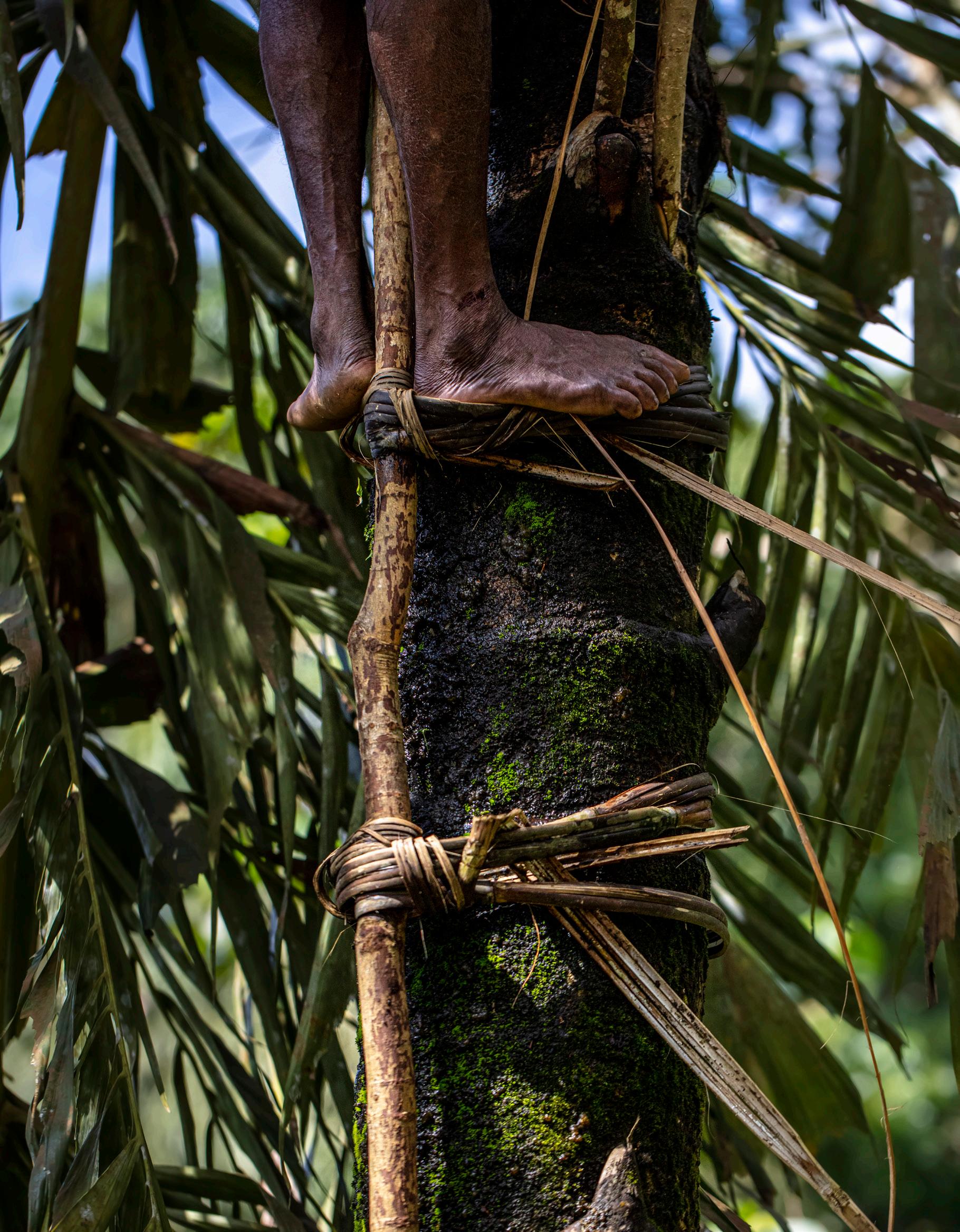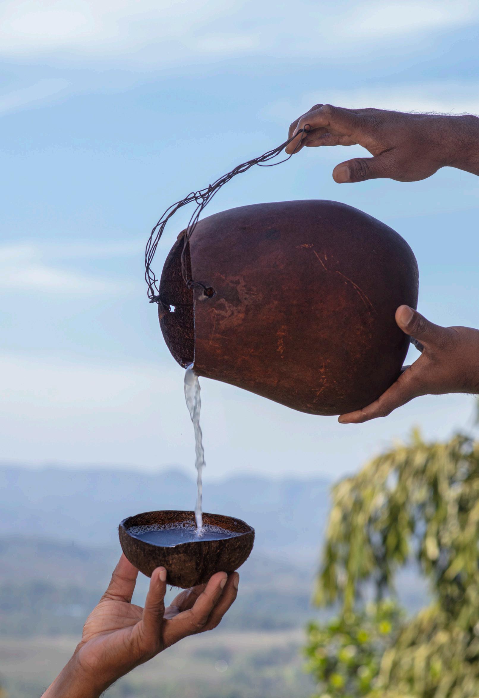 The characteristics of kithul toddy come exclusively from fresh unfermented sap, which is harvested drop by drop, from sharply cut immature flowers. This must be done by a senior tapper, following a series of rituals and preparations, attended to with utmost care.