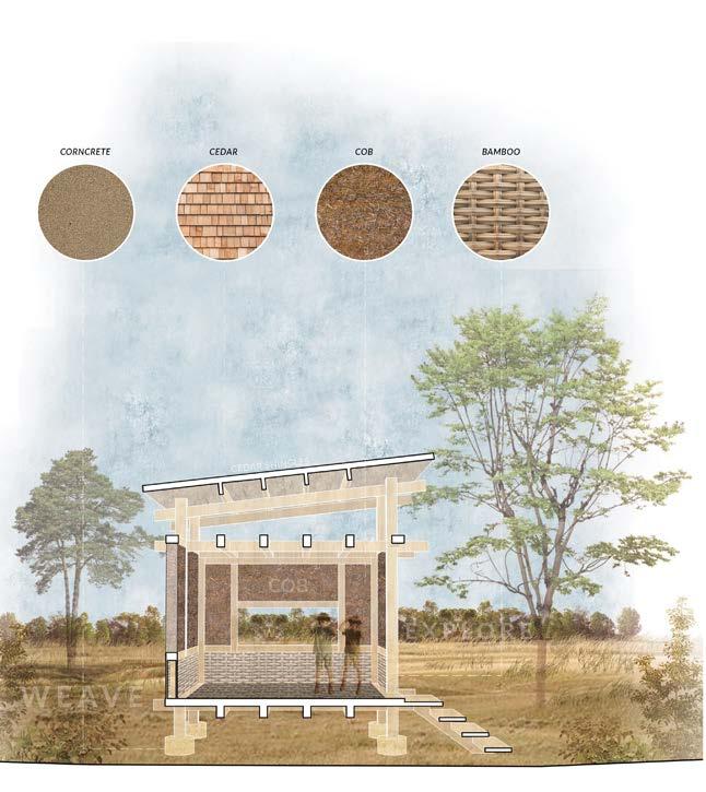 This independent study was born out of the fascination of Traditional Ecological Knowledge (TEK) and is an exploration of the ways that these practices can be applied in an architectural design context. Indigenous lifestyles often prioritize being in harmony with the environment and respecting all living beings, as seen through a web of interconnected relationships. This way of knowing directly influenced the design approach to the Weaved Pavilion. The Weaved Pavilion reveals a story about the landscape it sits in through its materiality.