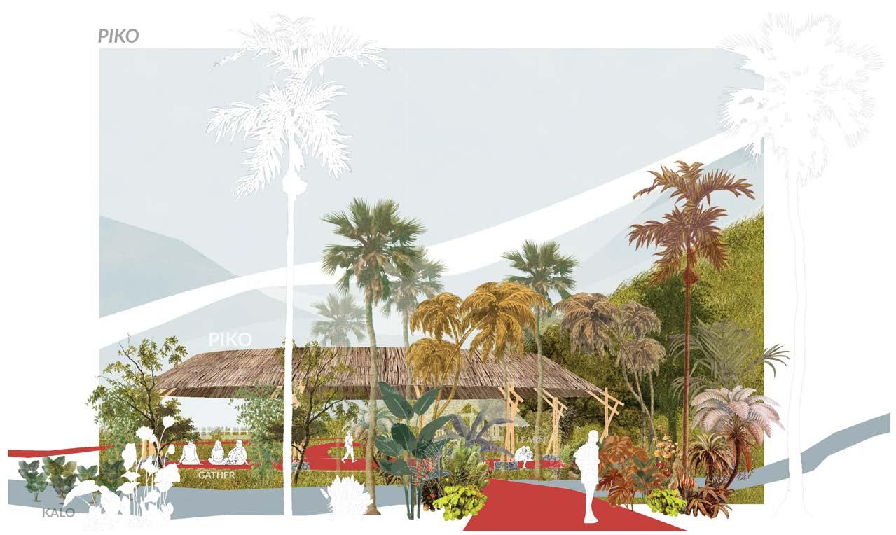 This thesis traces the evolving relationship between humans and the Hawaiian landscape. By diving into how indigenous Hawaiian knowledge and kinship to the land informed vernacular design, this project proposes an informed and ethical approach to sharing these histories through ecotourism. A series of pavilions guide visitors through diverse landscapes, embodying the spirit of “aloha ‘āina” - love and respect for the land. This project cultivated a deeper understanding of cultural sensitivity, climatic considerations, and the profound value of making as a way of knowing.