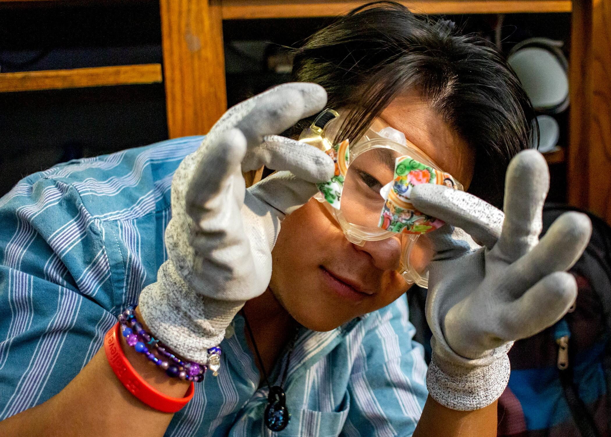 With help from Luna, Tri Duong looks for a pair of gloves to use while cutting China (Nov 5, 2022) (Left)
