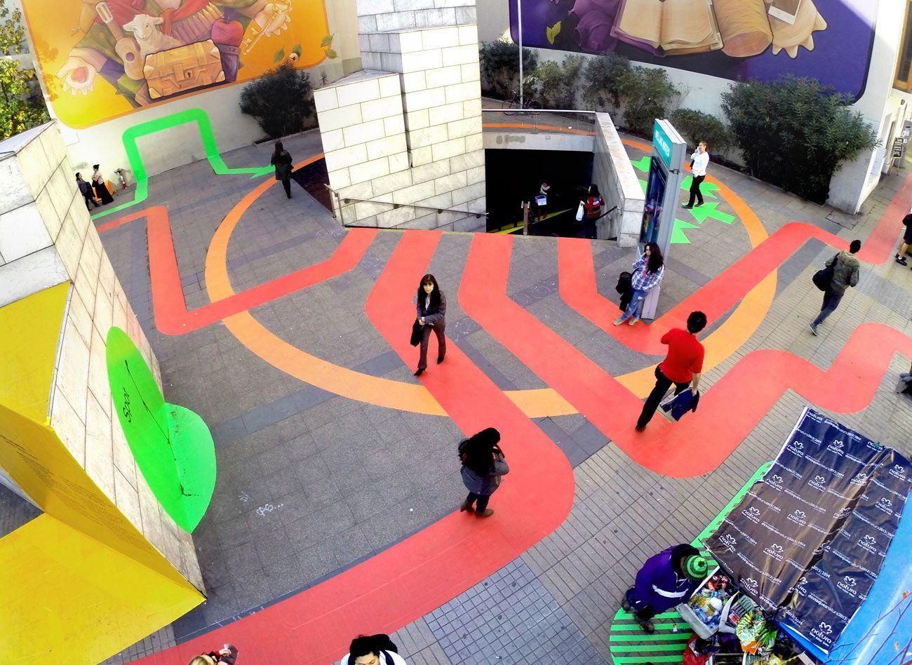 Calçada SESC, Itaú cultural e área calçadão Pintura lúdica no piso Caminho Ambiente