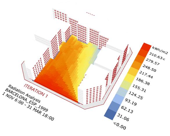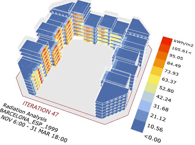Barcelona has always suffered from increasing population and congested spaces. The intention of this studio was to use computational tools especially grasshopper to analyze and evolve the gridded city of Eixample, using evaluation criterias such as solar exposure, courtyard exposure and volume.